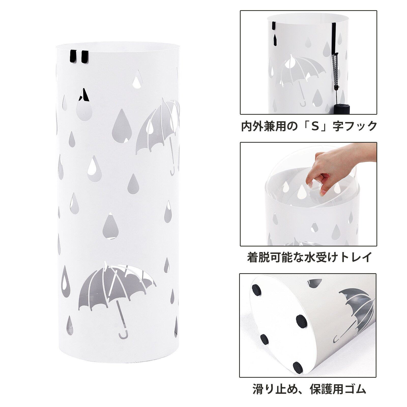 SONGMICS 傘立て おしゃれ スリム かわいい 水受けトレイ付き 業務用 折り畳み傘兼用 玄関 収納 白 LUC23W