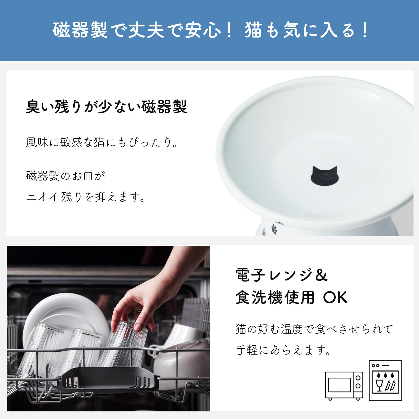 猫壱(necoichi)ハッピーダイニング 猫用 脚付にゃにゃめフードボウル レギュラー 猫柄吐き戻し軽減 電子レンジ&食器洗浄機対応