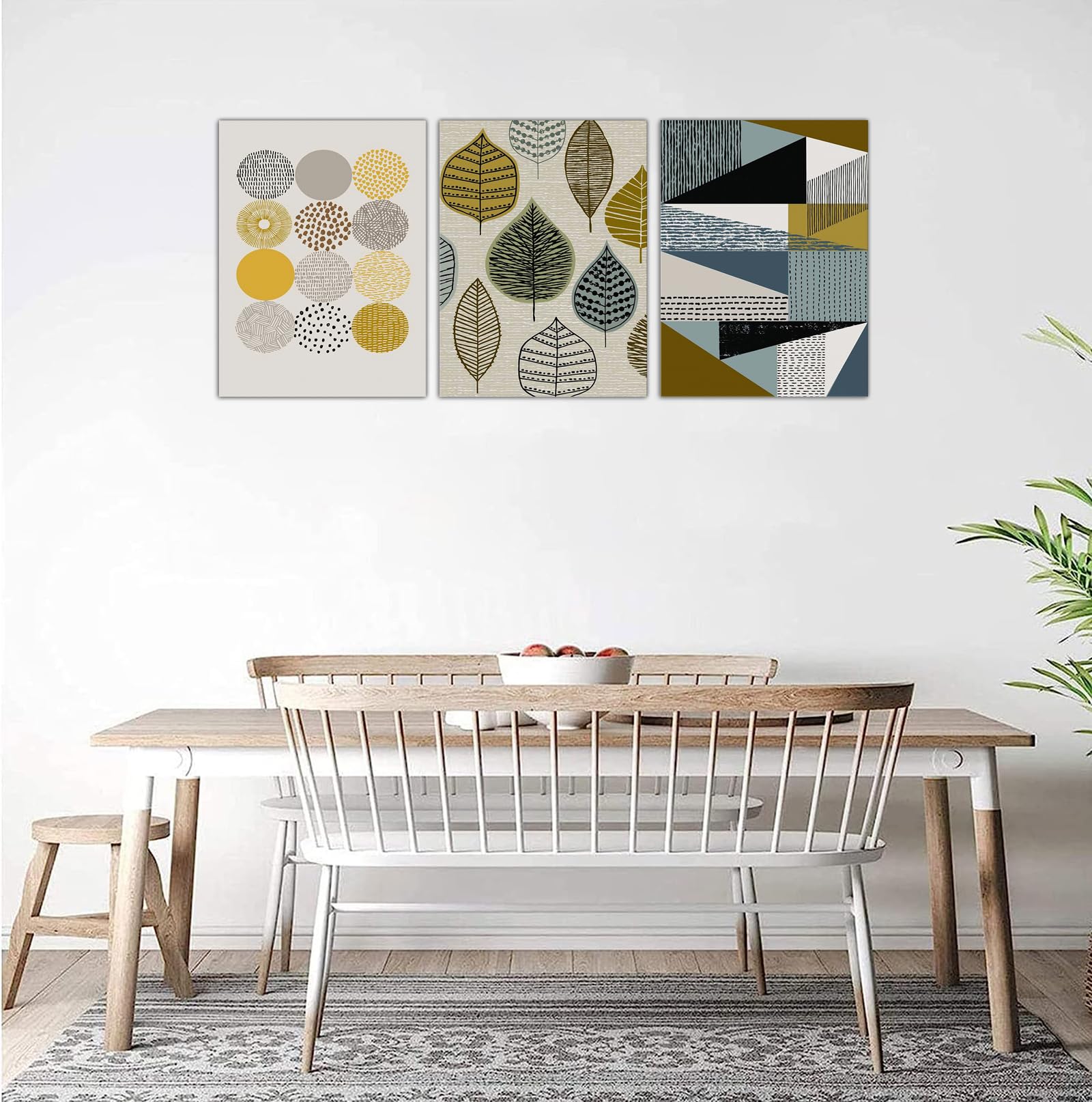 アートパネル 3枚 北欧 レトロ柄 丸葉 幾何学模様 ウォールアート ポスター 装飾絵画 ソファ背景絵画 壁掛け 寝室 リビングルーム ポーチ装飾 木枠完成品