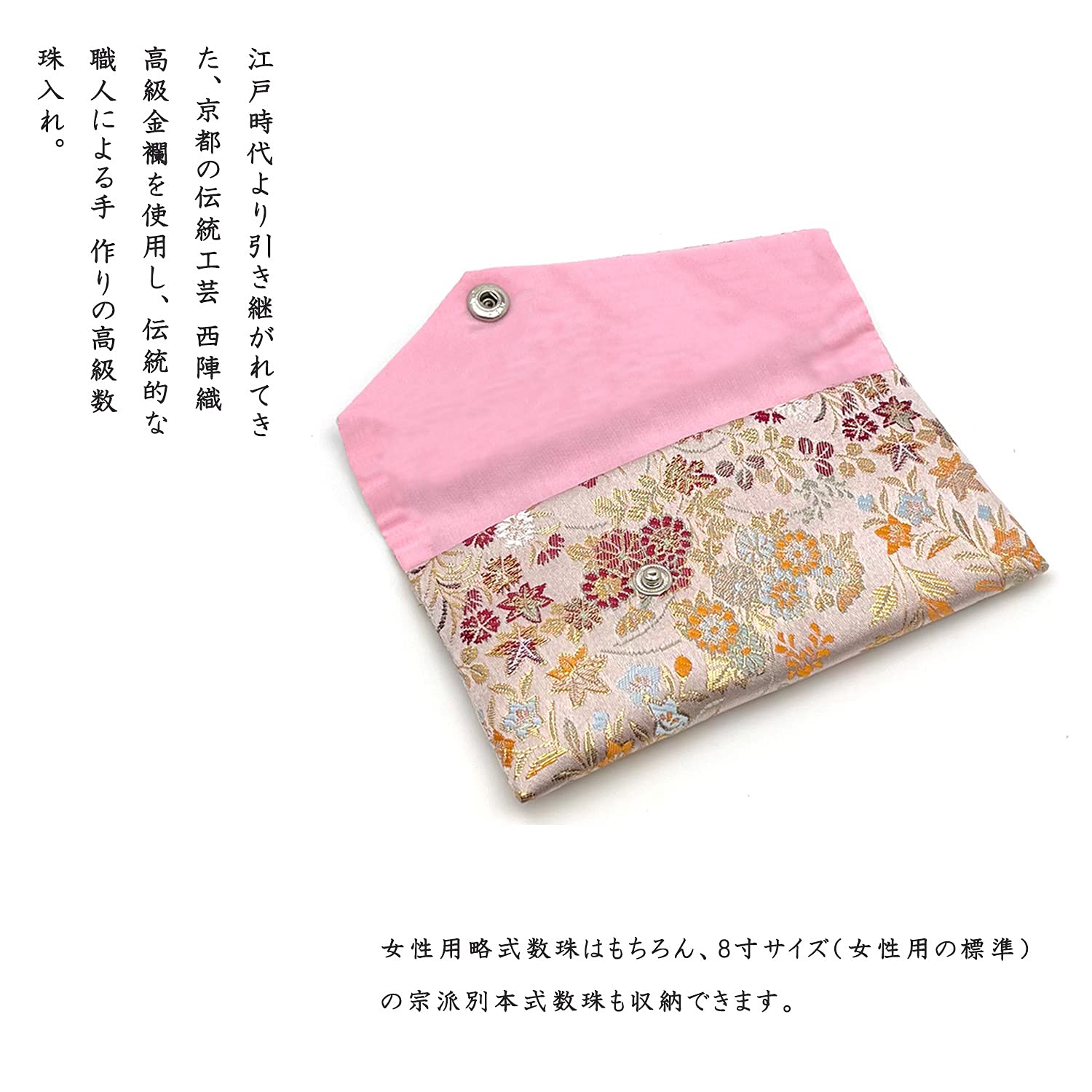 【付属品】:数珠袋(数珠入れ)をお付け致します。◆寸法:約16×10cm ◆数珠入れ対応のお念珠:8mmまでの女性用片手数珠