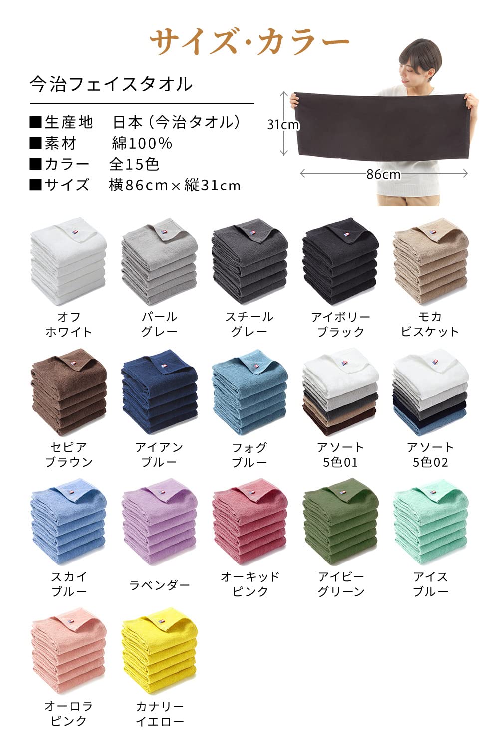 今治タオル フェイスタオル 5枚セット (全15色) 綿100% 約31×86cm 日本製 タオル 業務用 エステ サロン 洗顔 フェイシャルタオル 無地 介護 軽量薄手 速乾 高吸水 部屋干し 耐久性 プロ厳選 モカビスケット