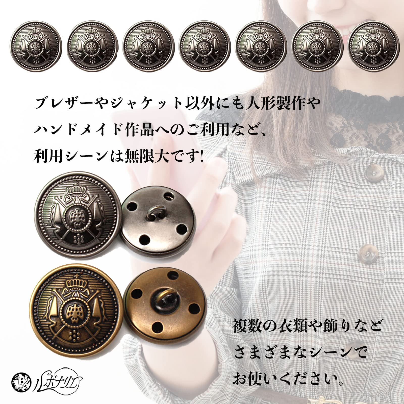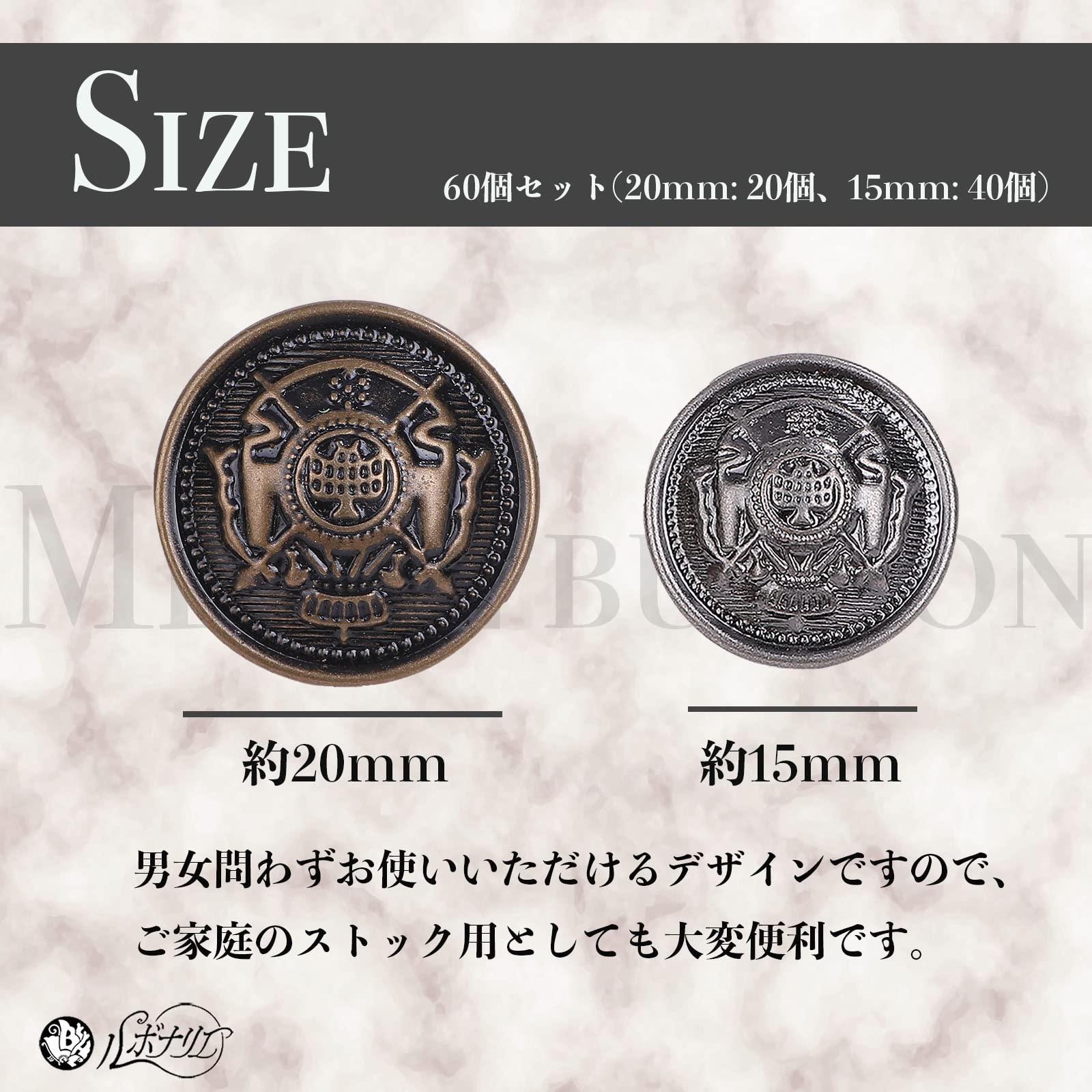 ルボナリエ メタルボタン アンティーク レトロ ボタン コート用ボタン ジャケット ブレザー アクセサリー 20mm 15mm (シルバー 60個)