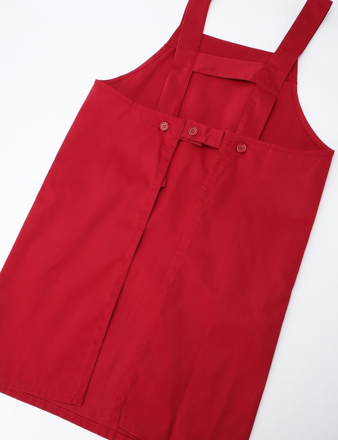 [エドウィン] エプロン 二段階調節可能な後ろ腰ボタン 無地 H型 両サイドポケット レッド L