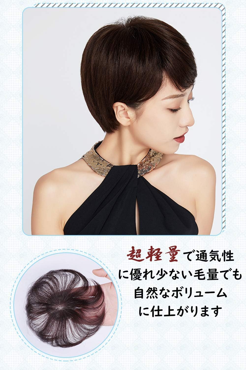 YOYO 部分ウィッグ つむじ専用 かつら 付け毛 総手植え トップカバー 人毛100% レディース ミニ ウィッグ メンズウィッグ ヘアピース 通気 (落ち着いた栗色)
