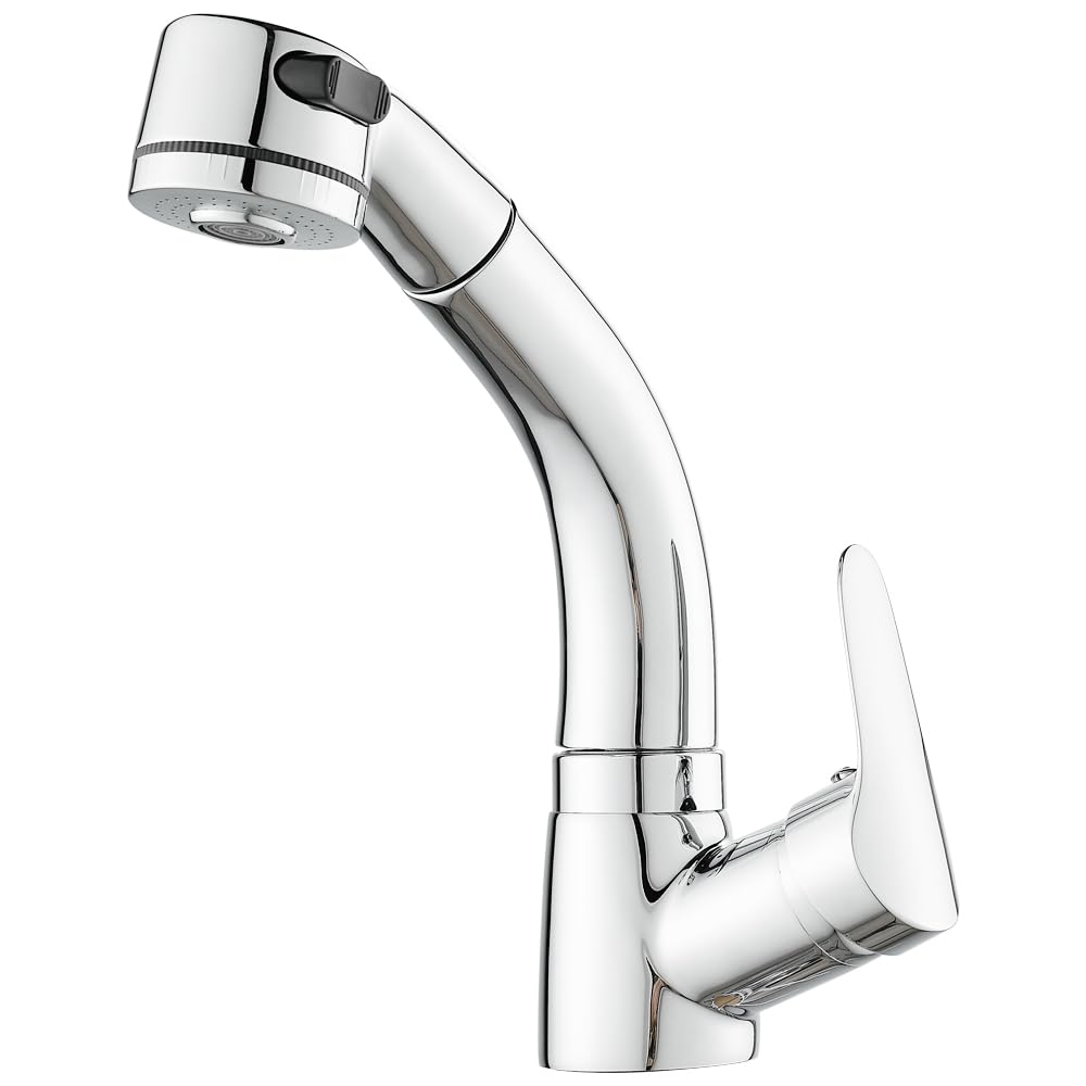 【ホース引き出し式】洗面水栓のホースは最長50 cm引き出し可能です,洗髪、洗面台をお掃除、場合はにはとても便利です。レバーひとつで水量と温度を調節でき、お年寄りからお子様までどなたでもご使用いただけます。