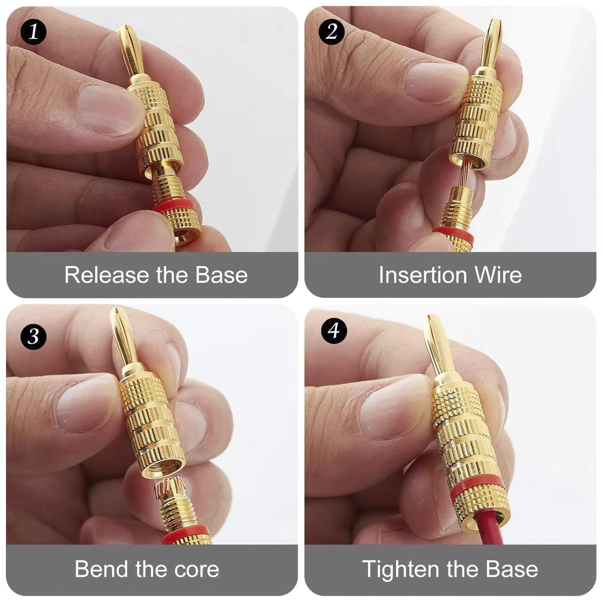 オーディオファン バナナプラグ スピーカーケーブル スピーカーワイヤー 壁プレート用 24K金メッキ ねじ込み式 ソルダーレス 銅メタルシェル 4mm 4個セット(2ペア)