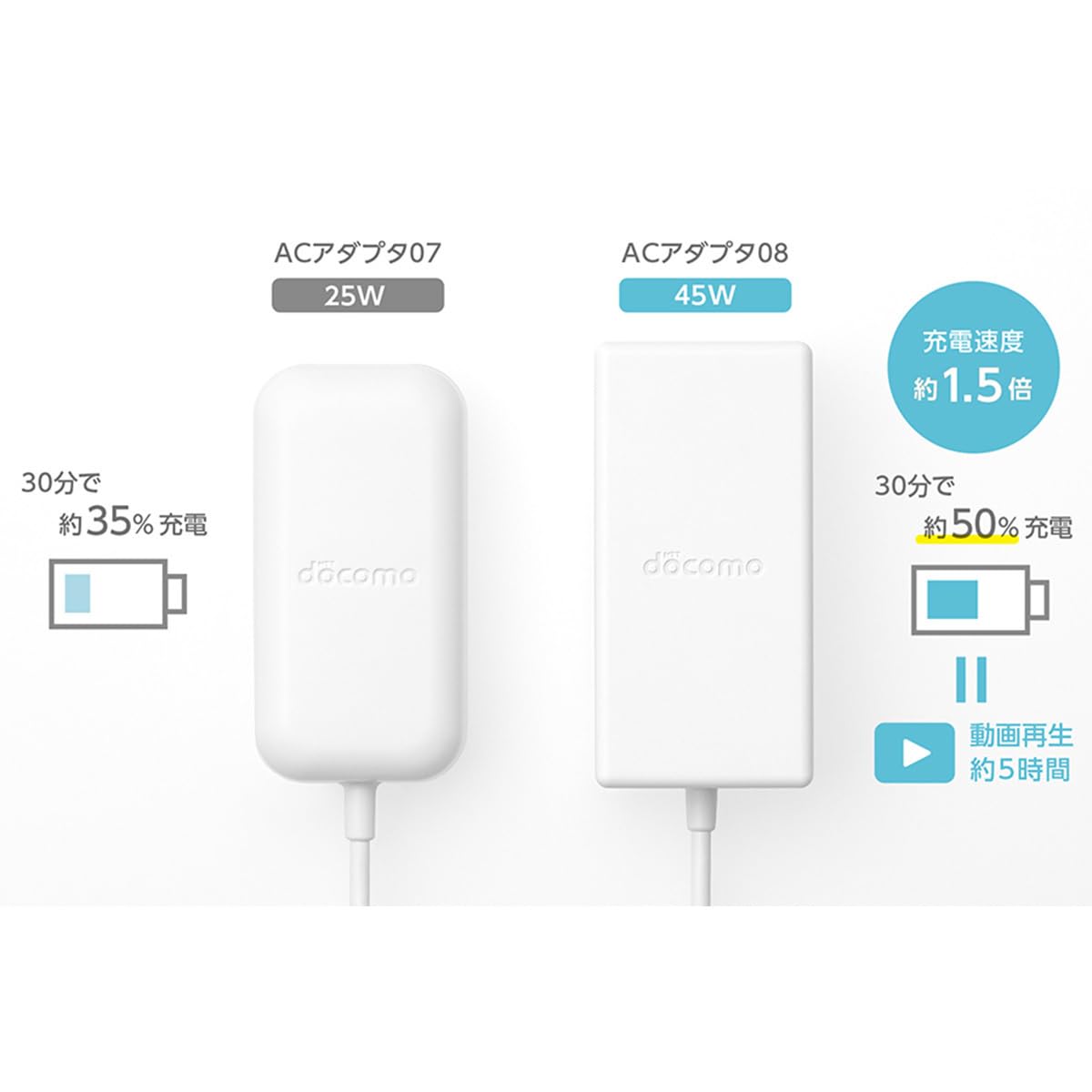 【ドコモ純正】ACアダプタ 08 充電器 PSE認証品 Type-C 最大45W 急速充電 異常検知機能 ケーブル付き Android Switch