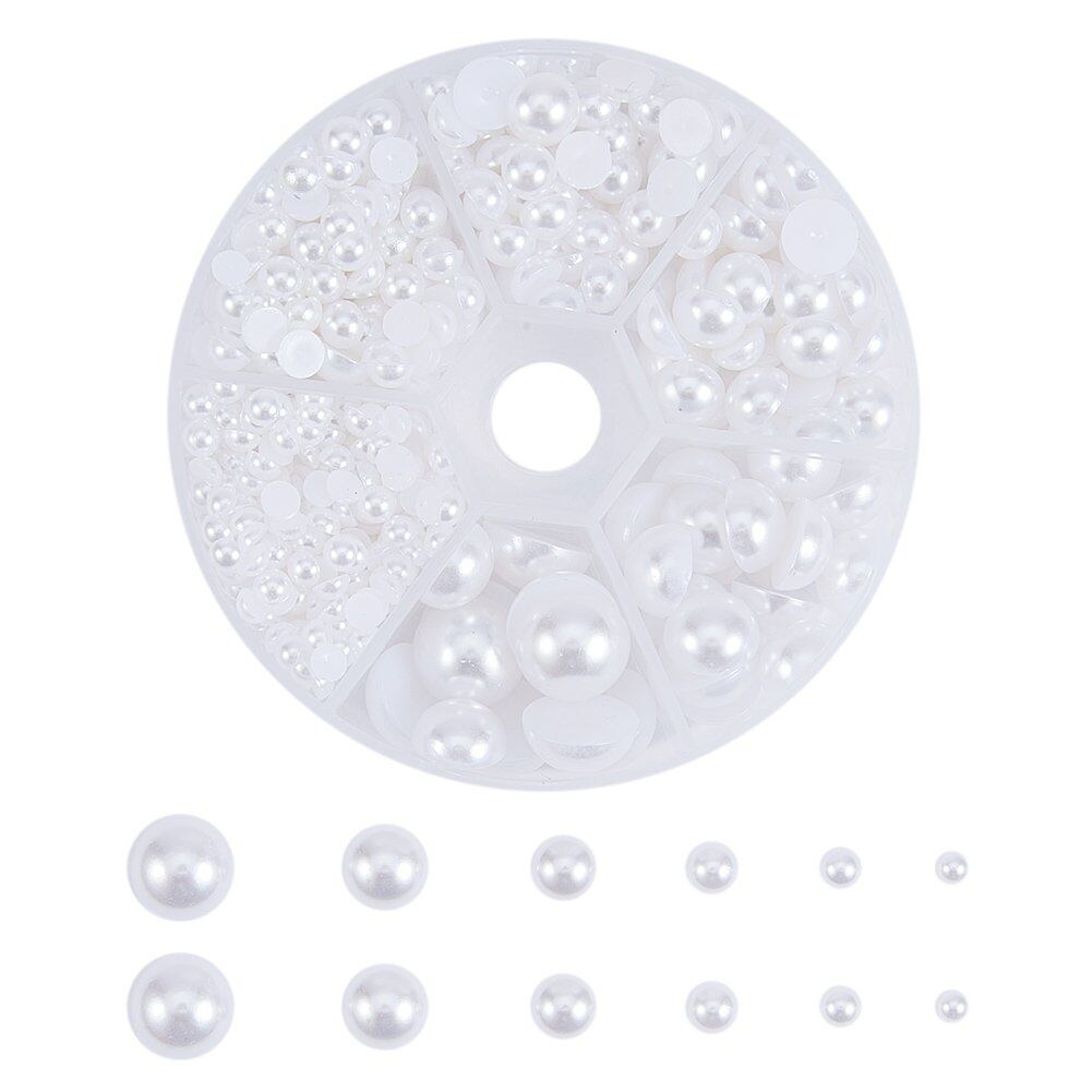 PandaHall Elite 約650個/箱 4~12mm直径 人工 真珠 半円 ハーフ ラウンド ジュエリー DIY用 ホワイト