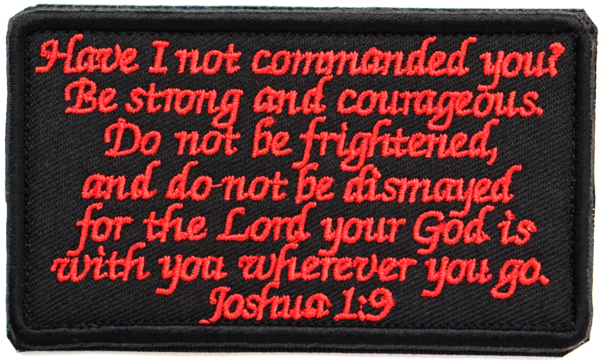 ワッペン 旧約聖書 ヨシュア記 1章9節 マジックテープ(ベルクロ・面ファスナー)着脱式 ミリタリー サバゲー 名言の刺繍パッチ (赤/黒)