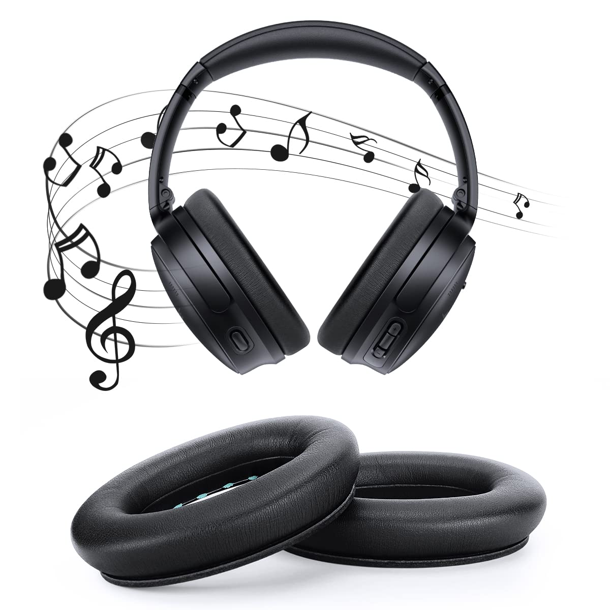 ELZOイヤーパッド イヤークッション交換用 Bose Quiet Comfort45(QC45) / Quiet Comfort SE (QC SE)ヘッドフォンに適用 遮音 ヘッドホン パッド イヤホン 高密度メモリフォーム ソフトPUレザー 革 音漏れ防止 1ペア入れ ヘッドホンパッド 2つ取り付けツール付き(ブラック)