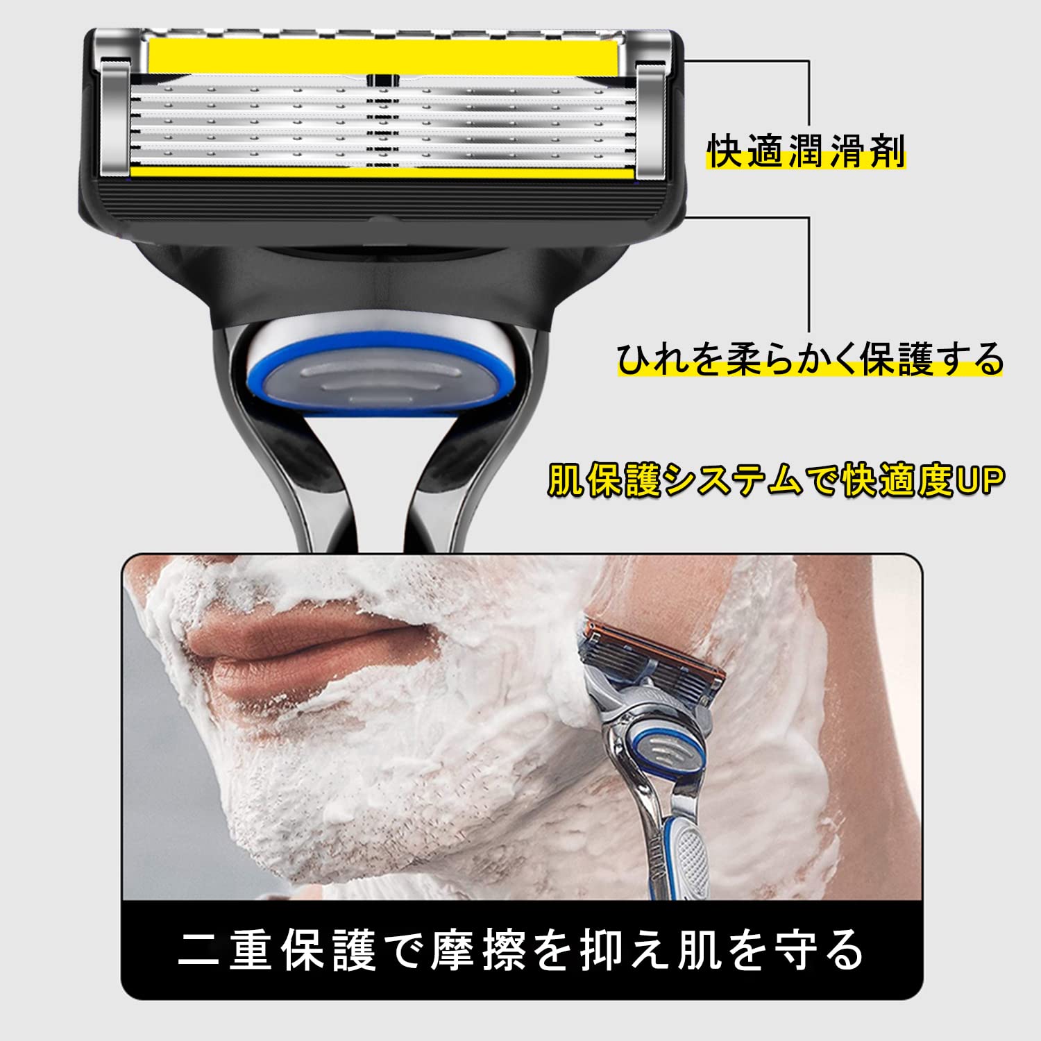 【高品質替刃】高品質のステンレスを使って、鋭いとともに長持ちます。シェーバーヘッドは連続的で効率的で使いやすいです。密接に配列された5枚刃が、肌への圧力の分散を促し、ひりつきの少ない肌にやさしいシェ一ビングを実現します。新しい替刃に交換すれば、買ったときの剃り味が回復、心地よくシェービングできます。
