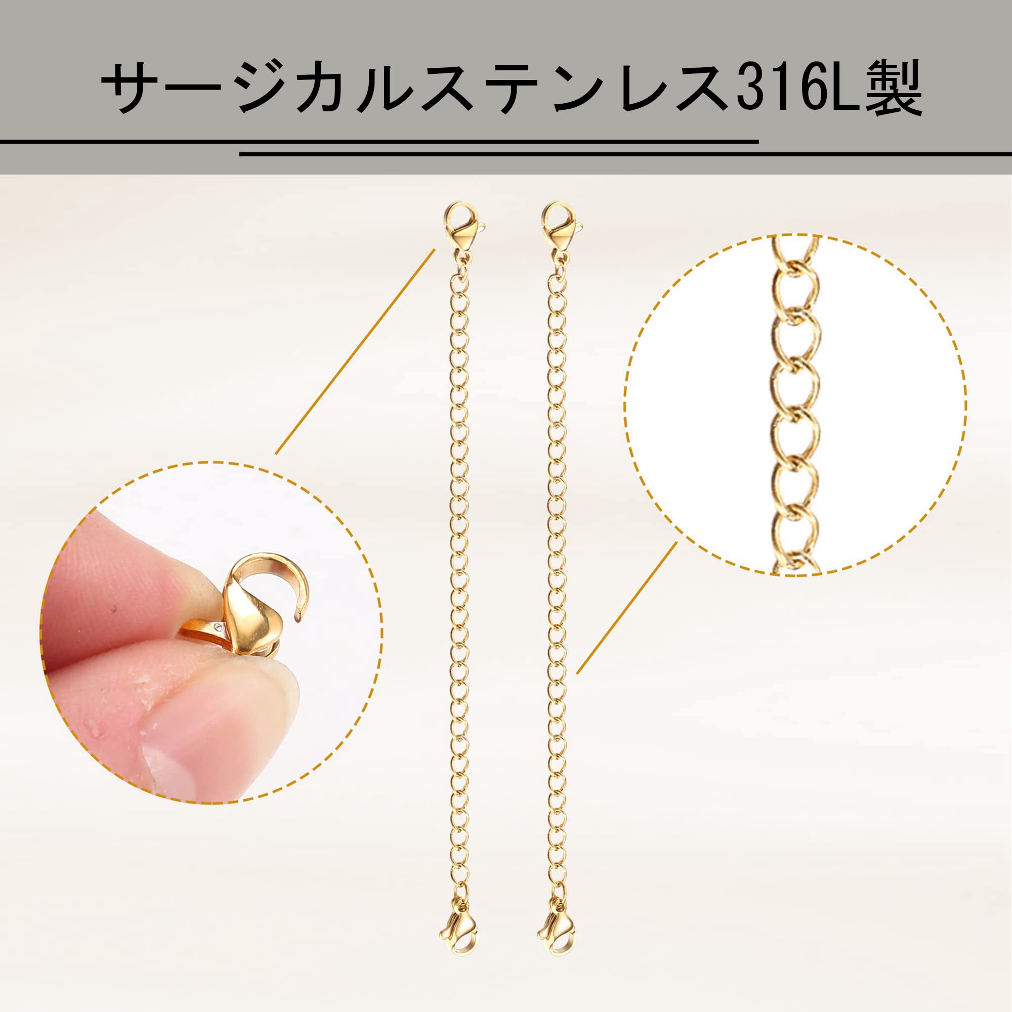 [Jstyle] 5本 アジャスター チェーン ネックレス 延長 チェーン パーツ ネックレス ステンレス製 5cm 8cm 10cm 12.7cm 15cm 長さ 調整 チェーン アジャスター プラチナ ゴールド ブラック チェーン 延長 | geisha Cat*