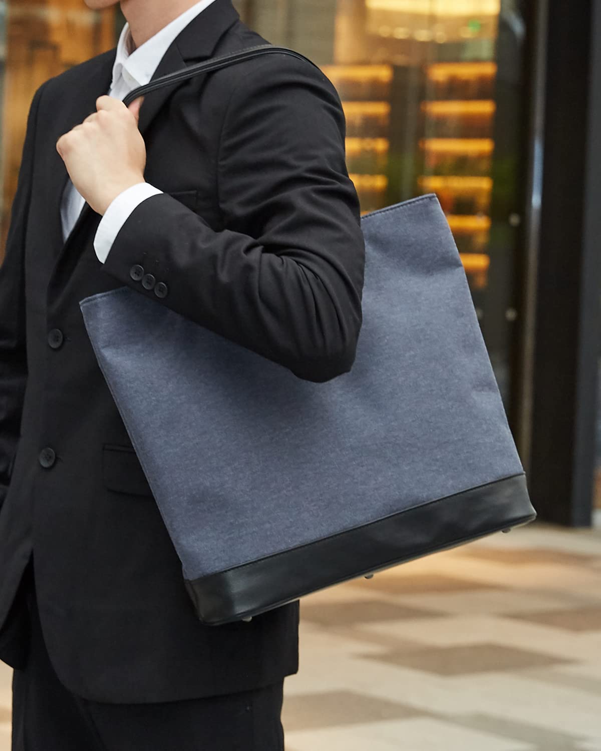 [オン&オフ兼用・機能性・ビジネストート]見た目はもちろんのことながら、重視したいのがその機能性。カジュアルに見られがちなトートバッグながらも高級感溢れる質感も持ち合わせたシンプルなデザイン。あらゆるビジネスグッズをスマートに持ち運び可能で、耐久性も抜群という高機能が自慢。いつでも万全な体制で戦い抜く。デキル男の相棒となるトートバッグです。