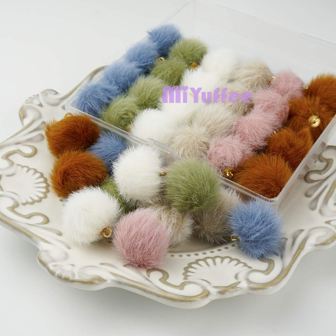 ファーボール カン付き 16mm 6色36個セット アイボリー アクセサリーパーツ (グレージュ・ブルー・ピンク・カーキ・キャメル)