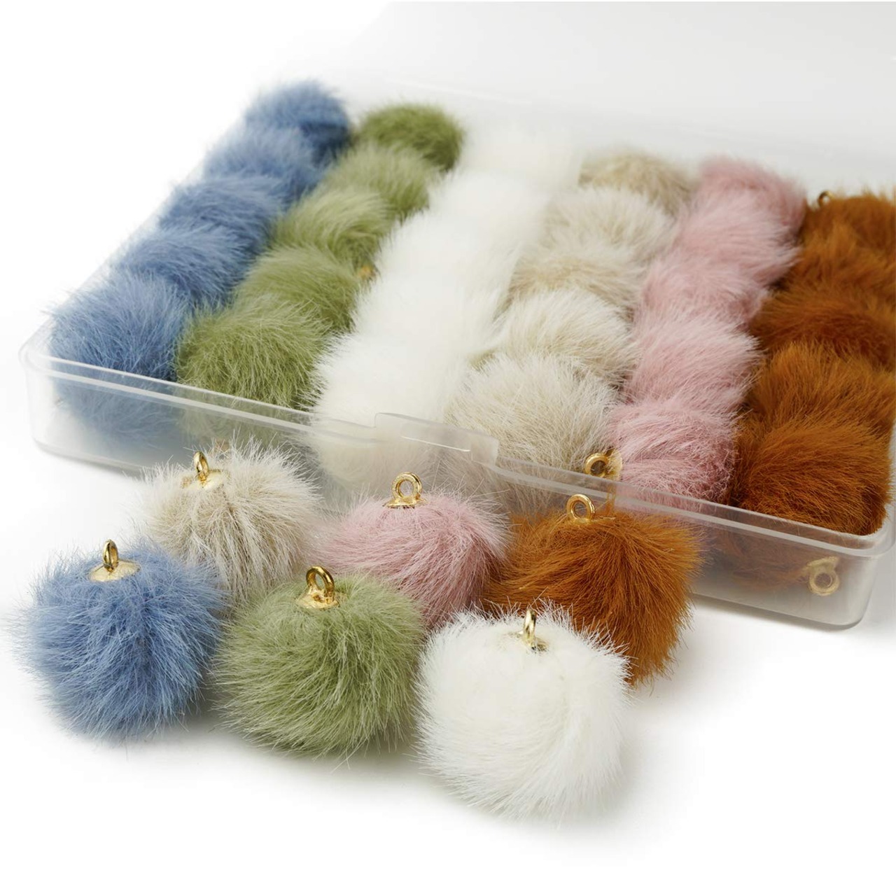 ふわふわ可愛いコロンとした直径約16mmのファーボールで、秋冬に大活躍の6色が揃います。カン付きのフェルトボールで、簡単に素敵なオリジナルアクセサリーをお作りいただけます。ピアス、ヘアゴム、ストラップなどにぴったり、特に寒くなる季節にほっこりなれるような可愛らしいチャームです。