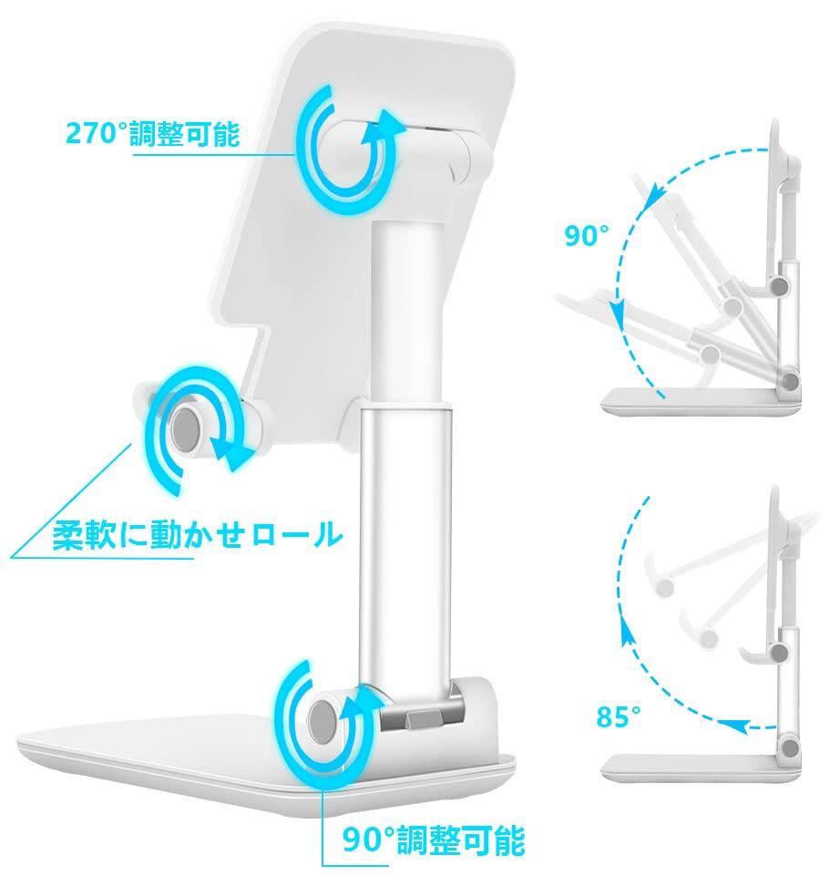 スマホスタンド 卓上 スタンド ホルダー 高度調整可能 スマホ スタンド おりたたみ 滑り止め 携帯 スタンド For iPhone/ipad/Switch/Samsung/Sony/Nexus/Kindle/Android(ホワイト) 2個セット