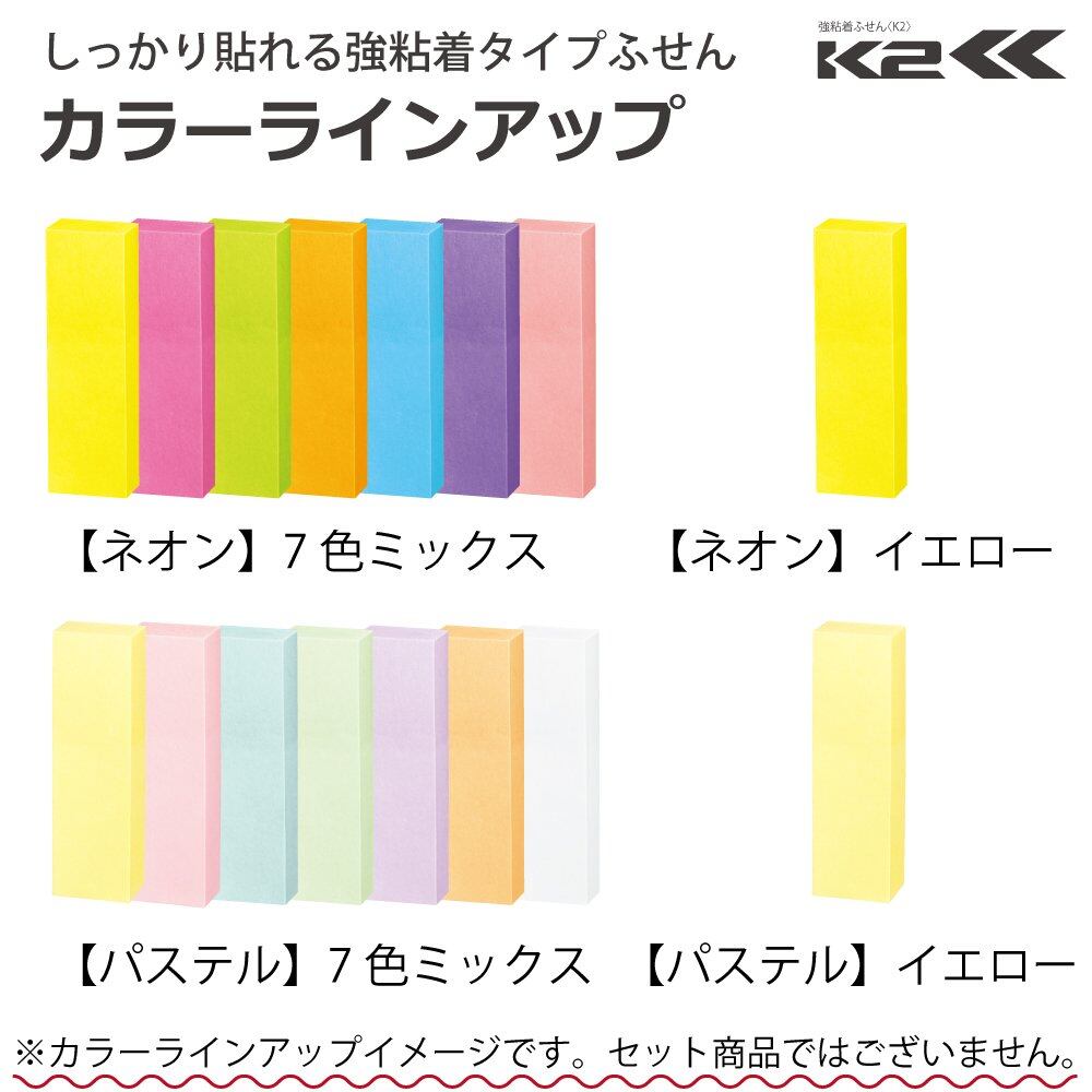 コクヨ(KOKUYO) 付箋 強粘着 K2 50mm×15mm ネオンカラー 90枚×25本 7色 K2メ-KN5015X25