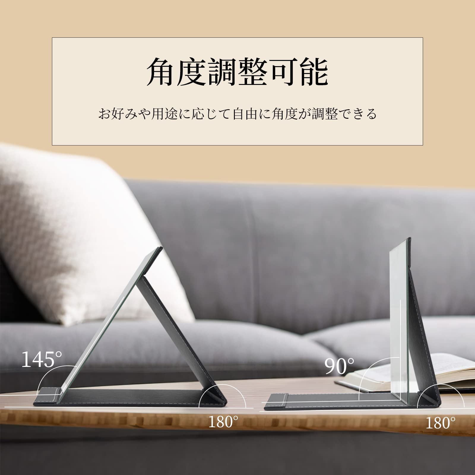 【自由な角度調整】:ミラーの角度を自由に調整できるので、お好みの角度で使用することができます。特にメイクやひげそりの際に便利です。
