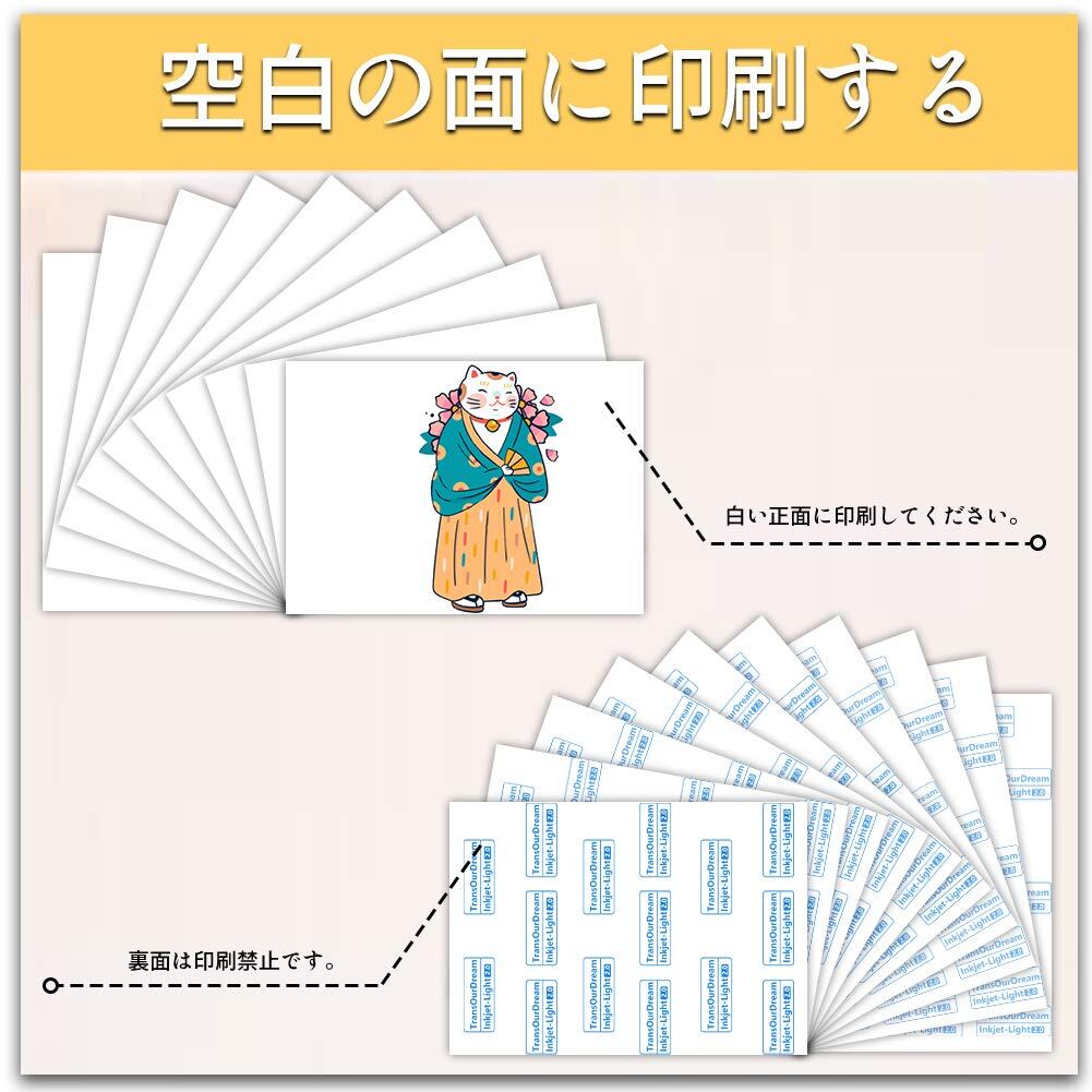 TransOurDream 真正の転写シート アイロンプリントシート2.0 正像印刷 白·薄色生地用 A4 5枚Tシャツ熱転写シート 洗濯に強い インクジェットプリンター·レーザープリンター両方使用可能 SKU:JP-2-5 | geisha Cat*