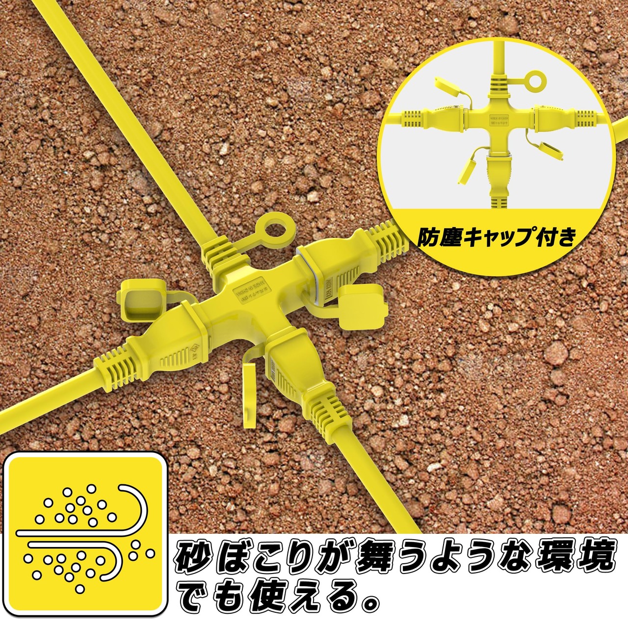 延長コード 10m 3個口 VCT高耐久 ソフトケーブル 125V 12A 耐トラッキングカバー付 イエロー 作業用 防塵キャップ付 電源ケーブル 10メートル 耐寒耐熱 汎用 耐久 電動工具 配線 工事現場 汎用機器 屋外室内 生活防水 | geisha Cat*