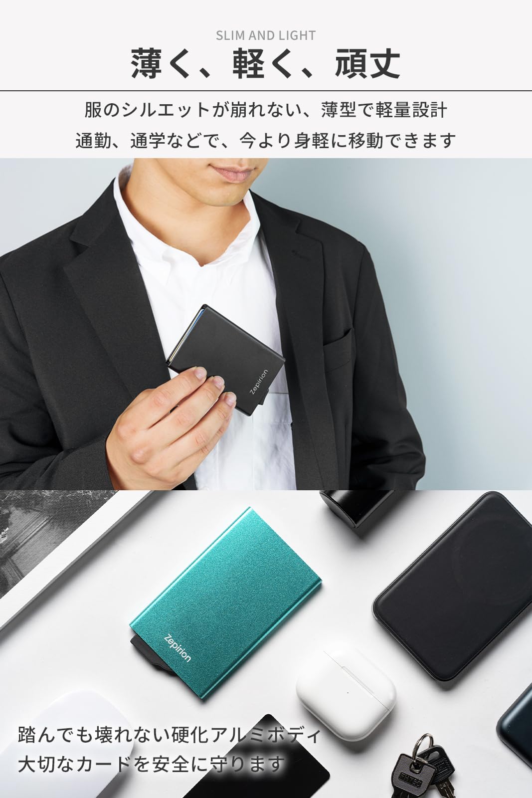 [zepirion] キャッシュレスに最適化 クレジットカードケース スキミング防止 磁気防止 スライド式 スリム 薄型 アルミニウム メンズ レディース Quick Wallet 2