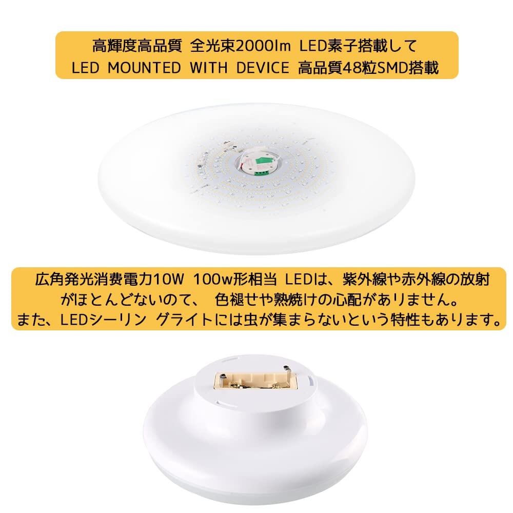LEDシーリングライト PSE認証済み 超薄型 小型 引掛け式 天井照明 10W 6畳 LEDライト LED電球 玄関/門灯/廊下/和室/台所/洗面所/トイレ (昼白色5000K)