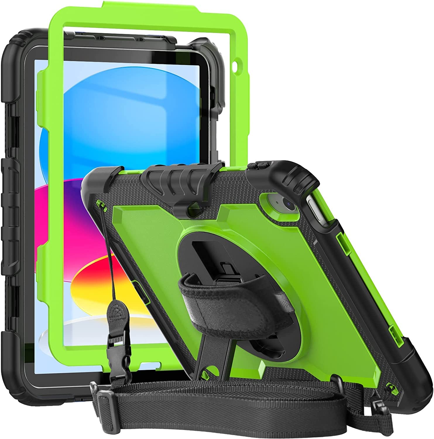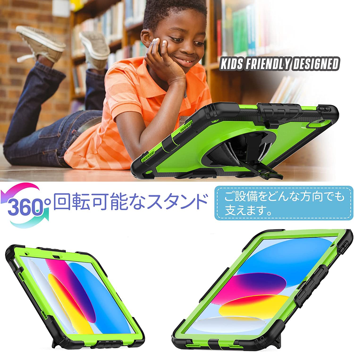 Herize iPad 第十世代/第十一世代(A16) 10.9 インチ ケース2022/2025 保護フィルムペン収納 iPad 10th/11th A2696 A2757 A2777 耐衝撃 頑丈三層鎧 落とす保護 ケース 360°回転スタンド 360度回転握り方 調節可能 柔らかい 丈夫 ハンドストラップ 防塵 多機能 実用 強い衝撃保護性能 子供 快適