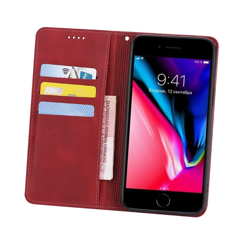 iPhone SE (第2世代/第3世代) ケース 手帳型 (4.7インチ対応) iphone8 iphone7 手帳型 ケース カバー PUレザー カード収納 財布型 耐衝撃 ケース マグネット スタンド機能付き 5色 (iPhone 7/8/SE2(2020)/SE3(2022)ケース 手帳型) (レッド)