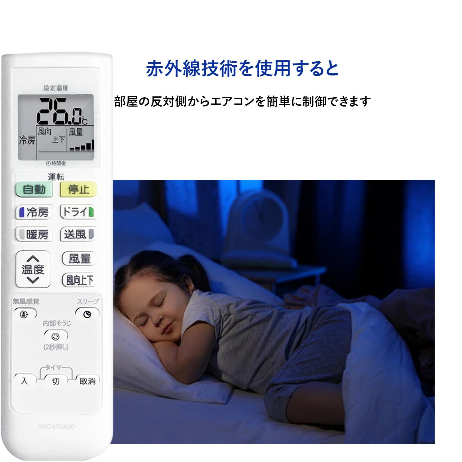 【制御距離】高感度な広角赤外線ランプを搭載、リモコンの動作距離:約8m以上、左右角度約120度制御が可能。距離や角度の制限がなく、部屋の隅々まで簡単に操作できます。