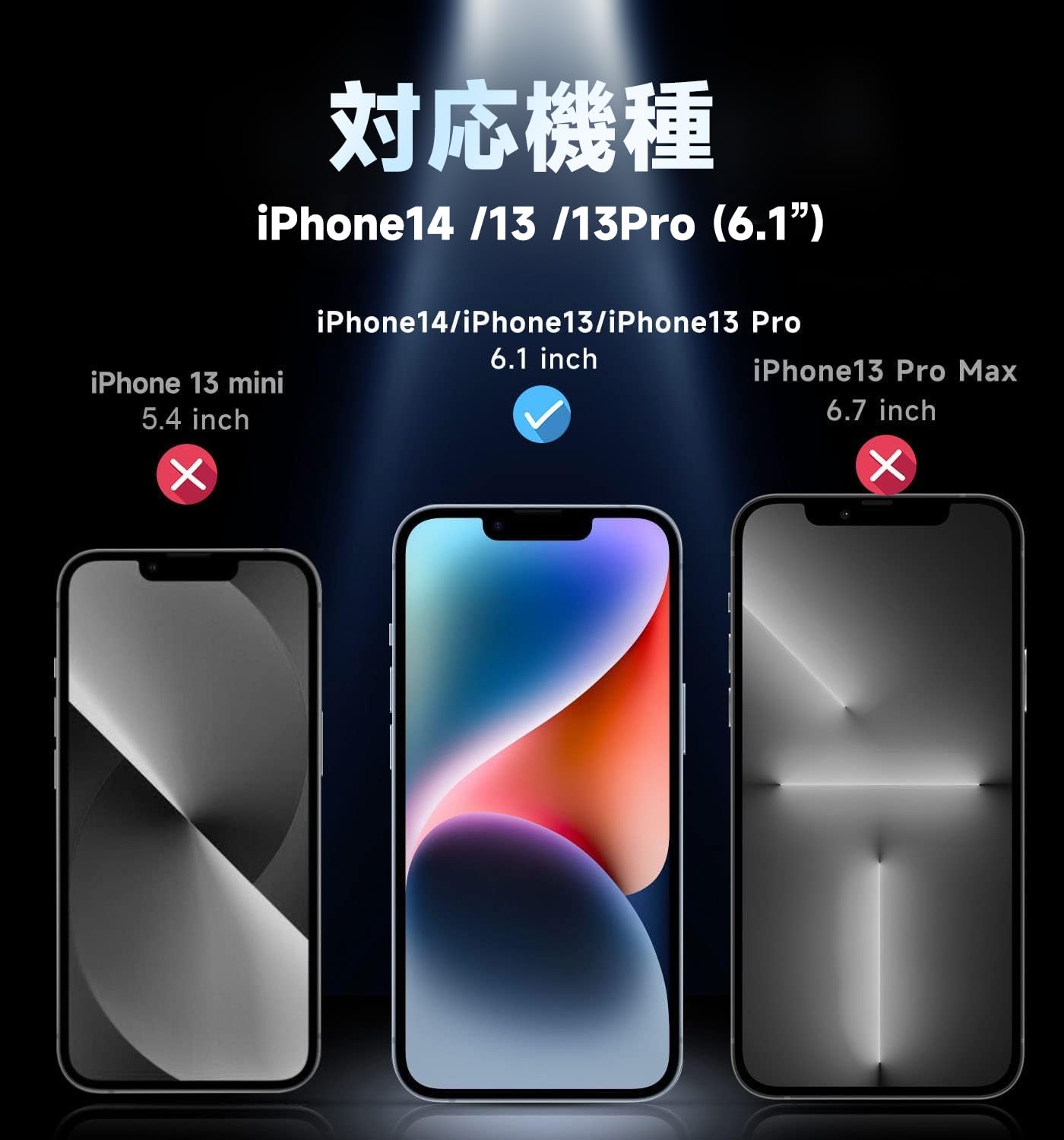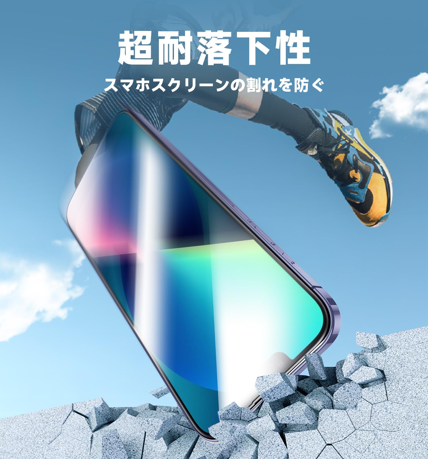 【もう失敗はしない】本製品はiPhone13/13pro/14に対応するガラスフィルム2枚セットです。百万以上の欧米ユーザーのフィドバックを集めて日々改善したガイド枠は、3歩だけで保護フィルムを貼り付けます。そのうえ、自動ホコリ取りデザインだけでなく、ガイド枠のスロープデザインで、空気を順序に取り除くことができて、初心者でも気泡レスのまま綺麗に貼れます。