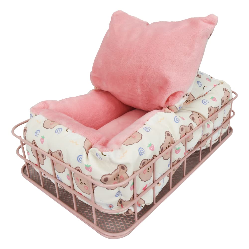 【セット内容】小動物ベッド×1点 鉄フレーム×1点 留め具×2点 【サイズ(約)】25cm×16.5cm×6cm 【カラー】ピンク 【適用対象】ハムスター・モモンガ・モルモット・ハリネズミ・リス・チンチラ・フェレットなど