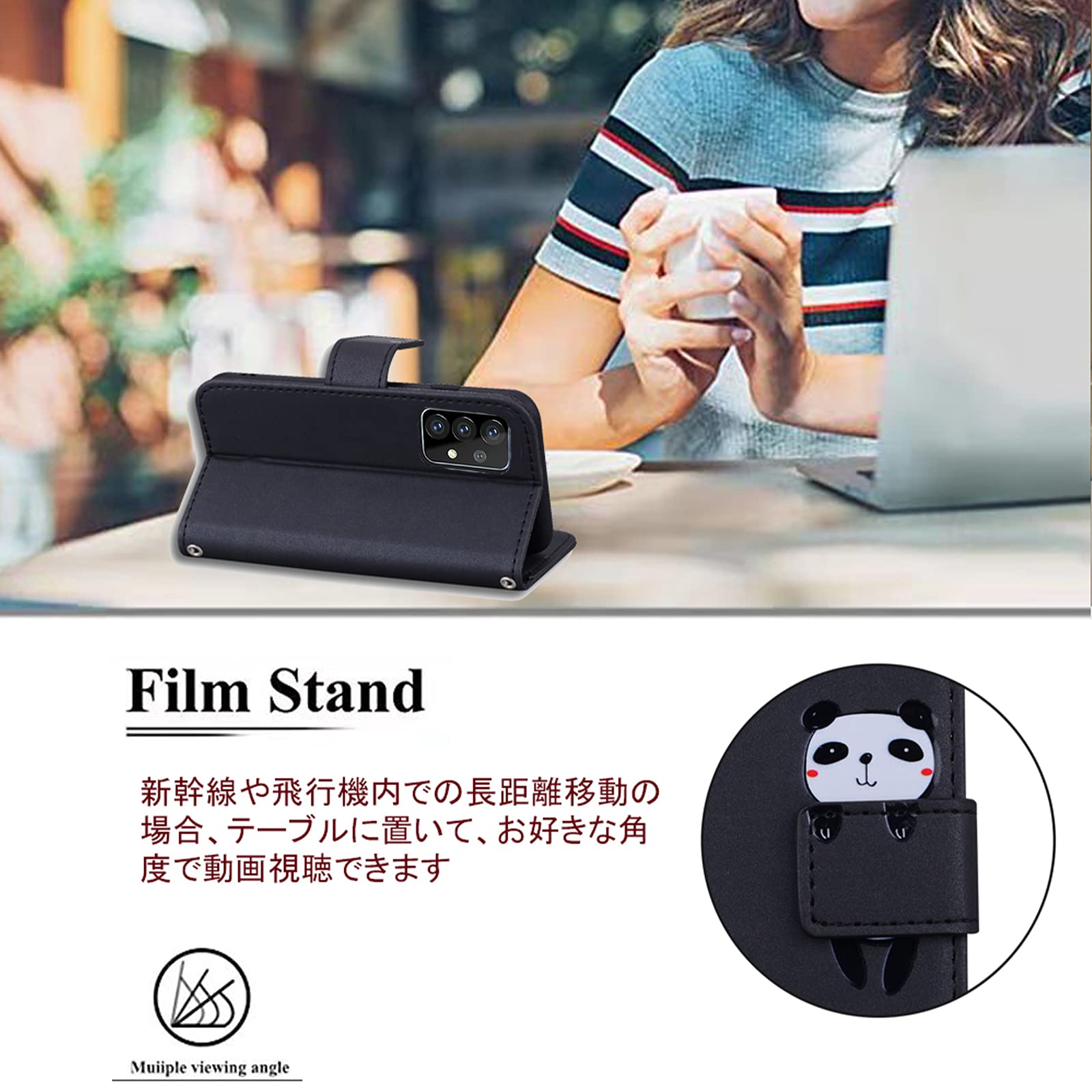 SUMSUNG Galaxy A52 5G SC-53B ケース 手帳型 スマホケース サムスン ギャラクシー a52 5g sc53b手帳型ケース カバー 可愛い キャラクター 携帯ケース スマホケース 携帯カバー レザー 柔らかいTPUケース 肌触り良い革 スマホけーす ケータイケース カード収納 財布付き カードホルダー ベルトマグネット スタンド機能 パンダ かわいい 動物柄 薄型 防水 ノート型 人気 おしゃれ 男女兼用 Galaxy A52 5G SC-53B対応 ブラック