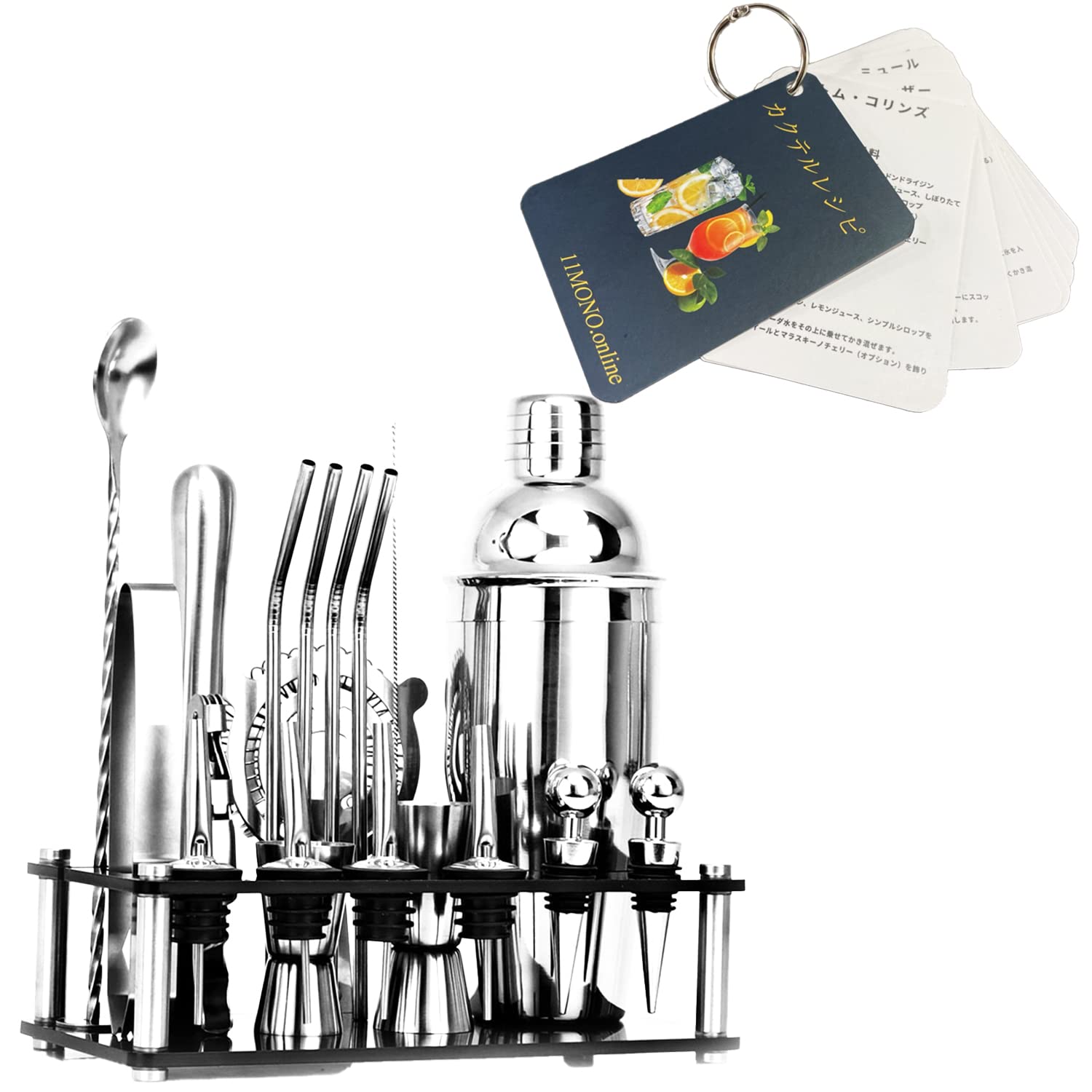 T8 カクテルシェーカー 最多個数 20点セット カクテルレシピ付き バーテンダー セット ツール ステンレス製 業務用 550ml