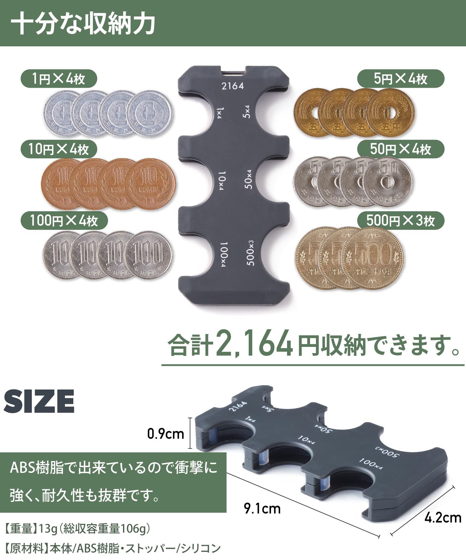 【point.1】おおよその枚数をひと目で把握できて小銭の整理にもおすすめ