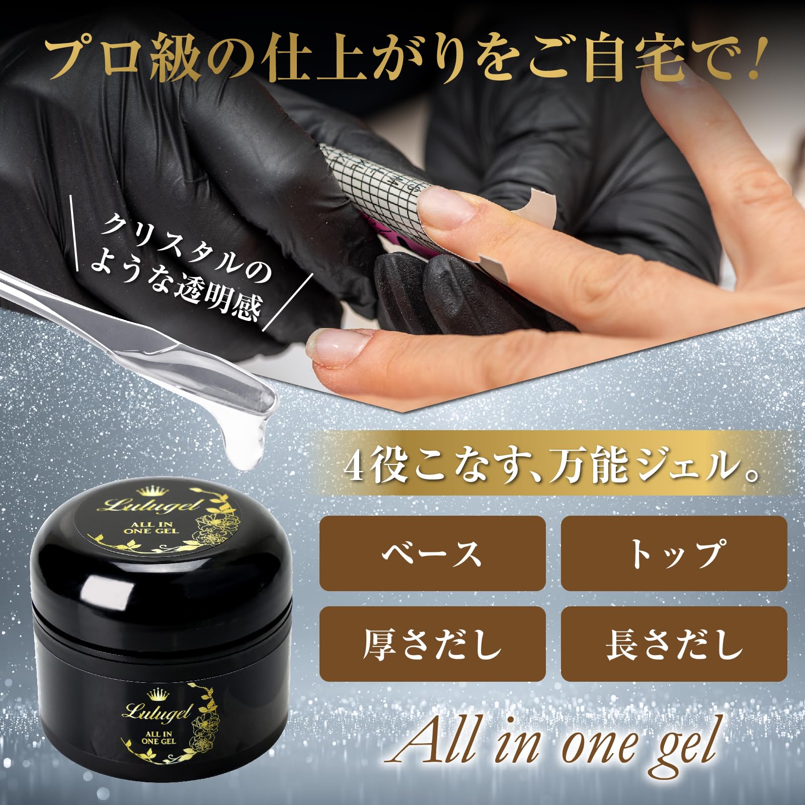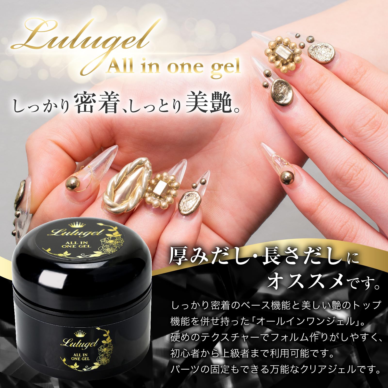 【LULUGEL オールインワンジェル】内容量:30g ベース/トップ/厚みだし/長さだし