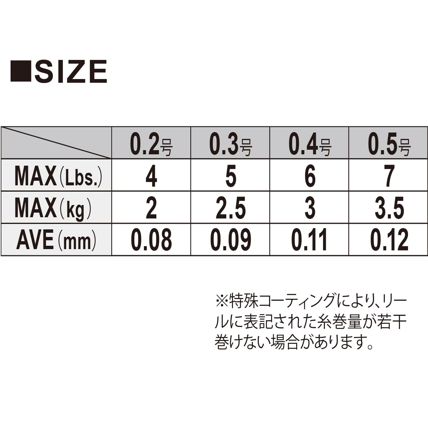 ※特殊コーティングにより、リールい表記された糸巻量が若干巻けない場合があります。