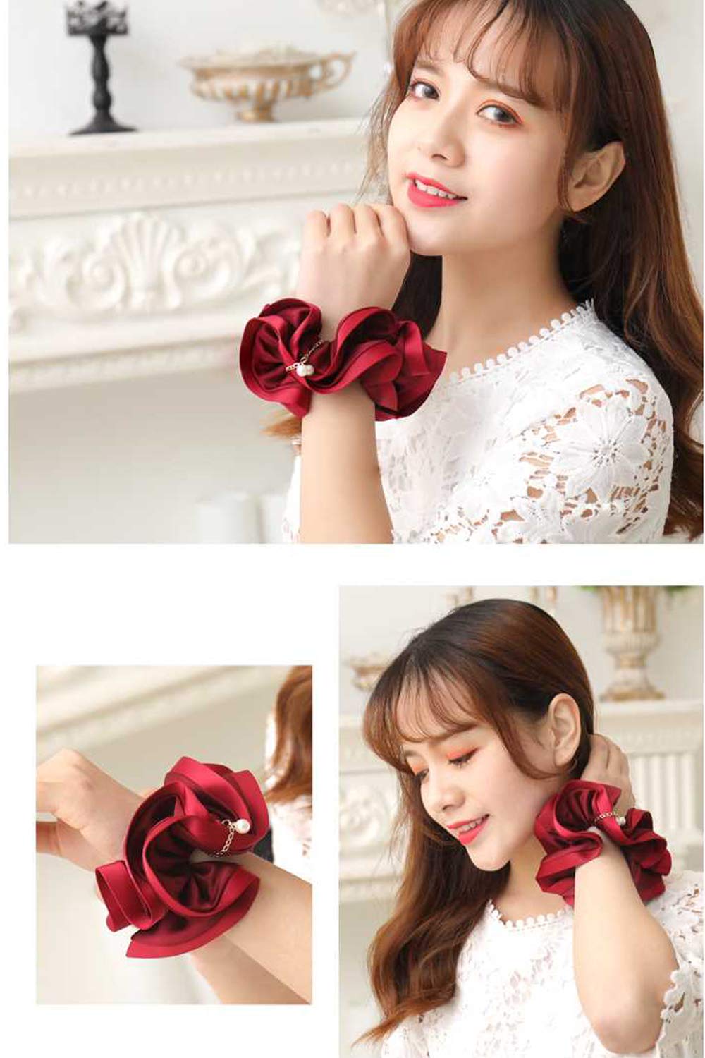 定番のシュシュも女性らしい光沢のあるサテン生地で、ぐっとエレガントな印象に。