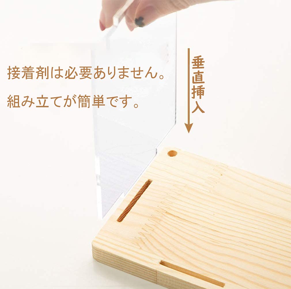 素材:ディスプレイケースは、透明度の高いアクリルパネルと、PVCマイクロフォームパネル/木製のベースで構成されています。アクリルパネルに傷がつかないように、両面のアクリルパネルを保護フィルムでラミネートしています。