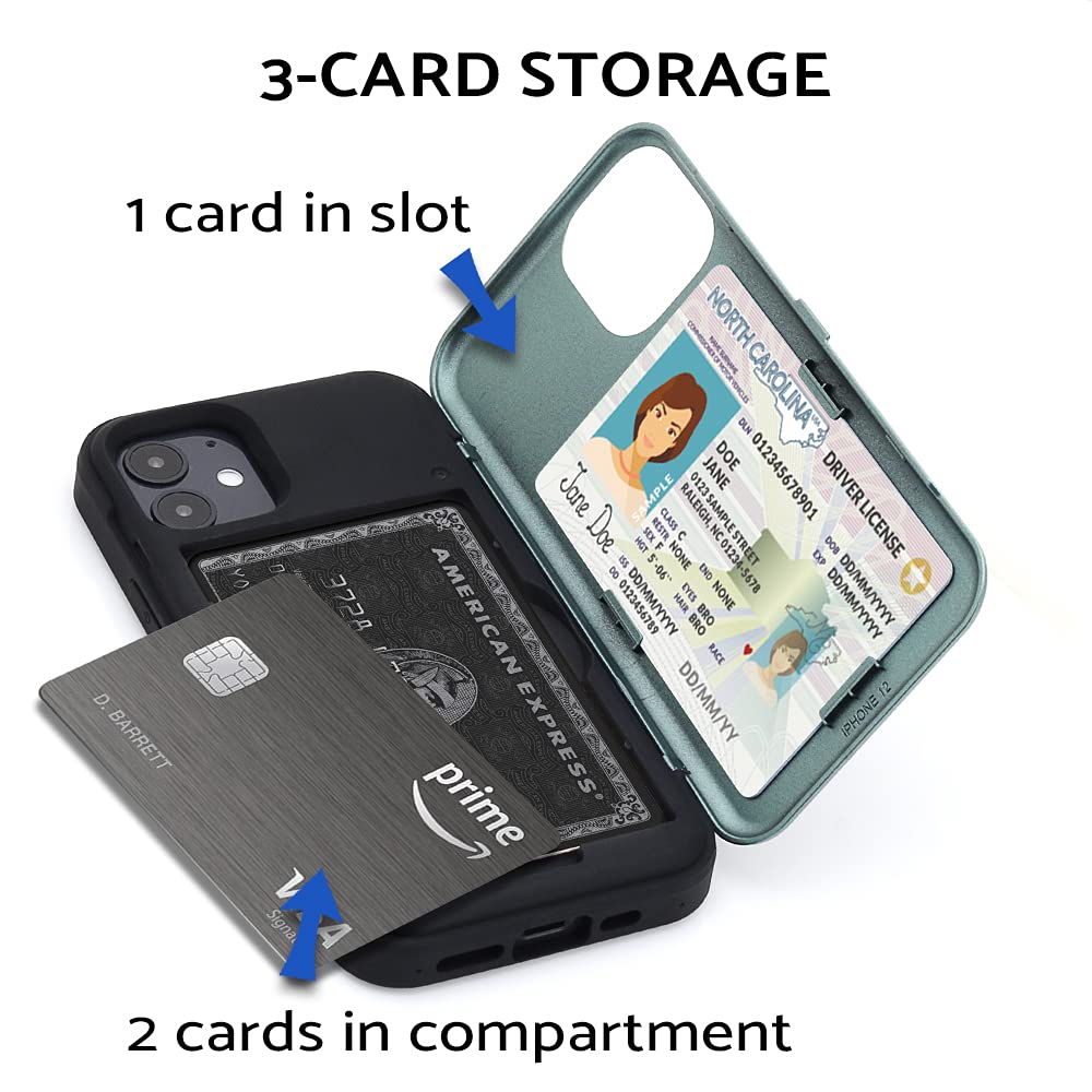 TORU CX PRO iPhone 12 Mini ケース カード 収納背面 3枚 カード入れ カバ― (ストラップ ミラー 含ま) - アイフォン12 Mini 用 - ミッドナイトグリーン