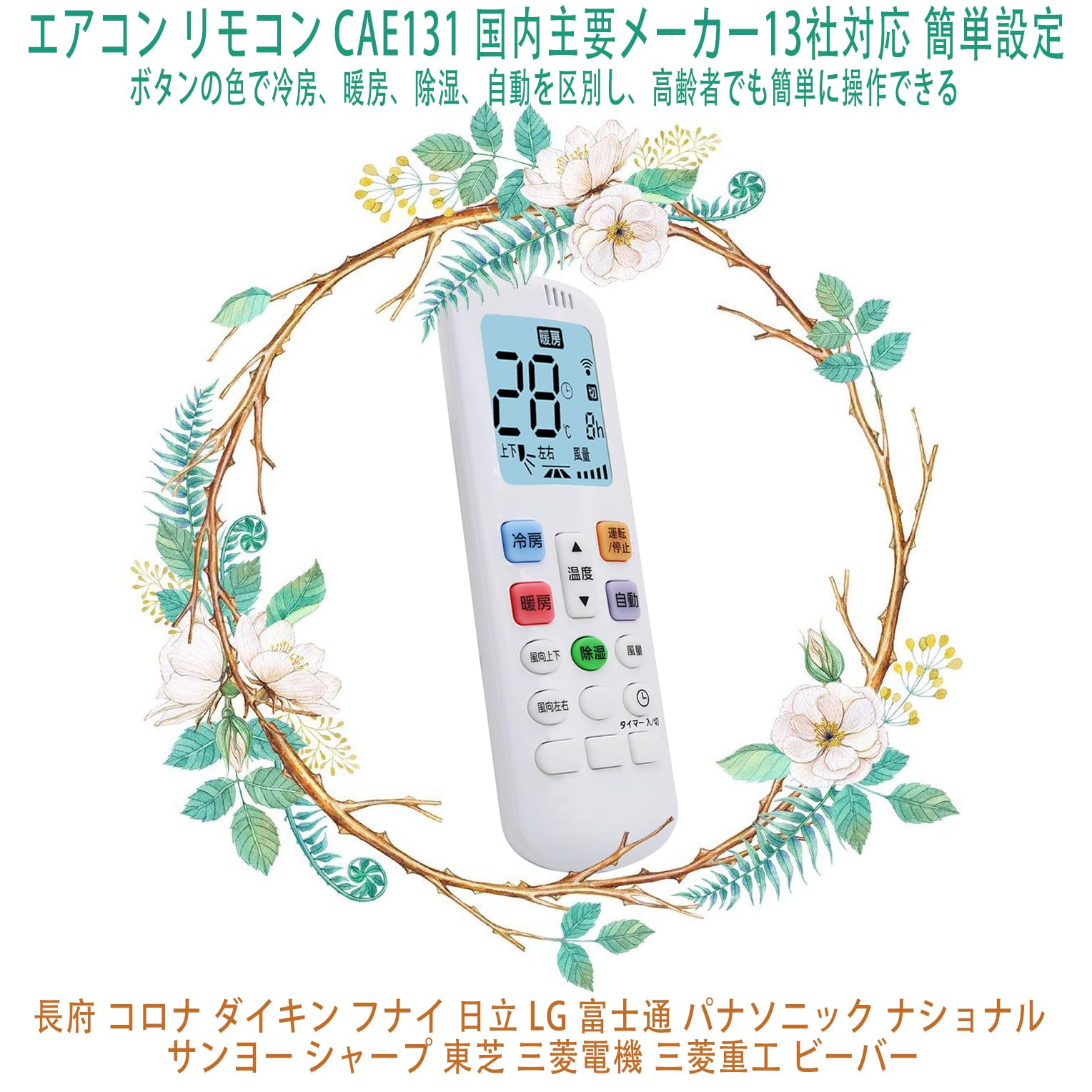 エアコン リモコン 汎用 CAE131 エアコン 汎用 リモコン 13社対応 —— CHOFU 長府 CORONA コロナ DAIKIN ダイキン FUNAI フナイ Fujitsu 富士通 HITACHI 日立 LG MITSUBISHI 三菱 霧ヶ峰 Panasonic パナソニック National ナショナル SANYO サンヨー SHARP シャープ TOSHIBA 東芝 設定簡単