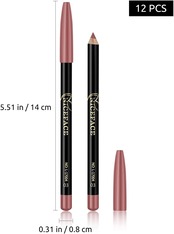 12色ペンシルマットリップライナーセット、長持ち、防水、スムーズ、ナチュラル、プロのメイクアップリップライナーペンシルセット女性用