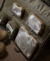 背面の四角いカバーをはがすとベルクロテープがついているため、バックパックなどのベルクロパネルに簡単に取り付け可能