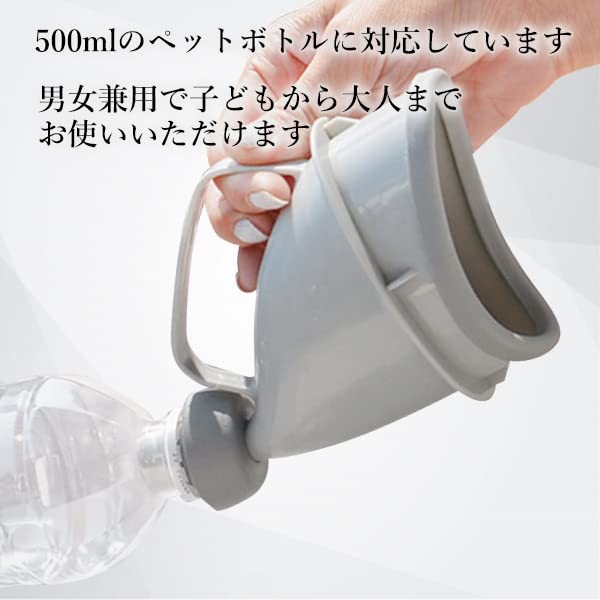 ・ペットボトルに差し込むだけで使える携帯トイレです。 ・500mlのペットボトルに対応しています。 ・分解して丸ごと水洗いができます。 ・男女兼用でお子様から大人まで使うことができます。 ・災害時や渋滞にはまってしまった時などの緊急時に役に立ちます。 【商品仕様】 素材 ポリプロピレン カラー グレー