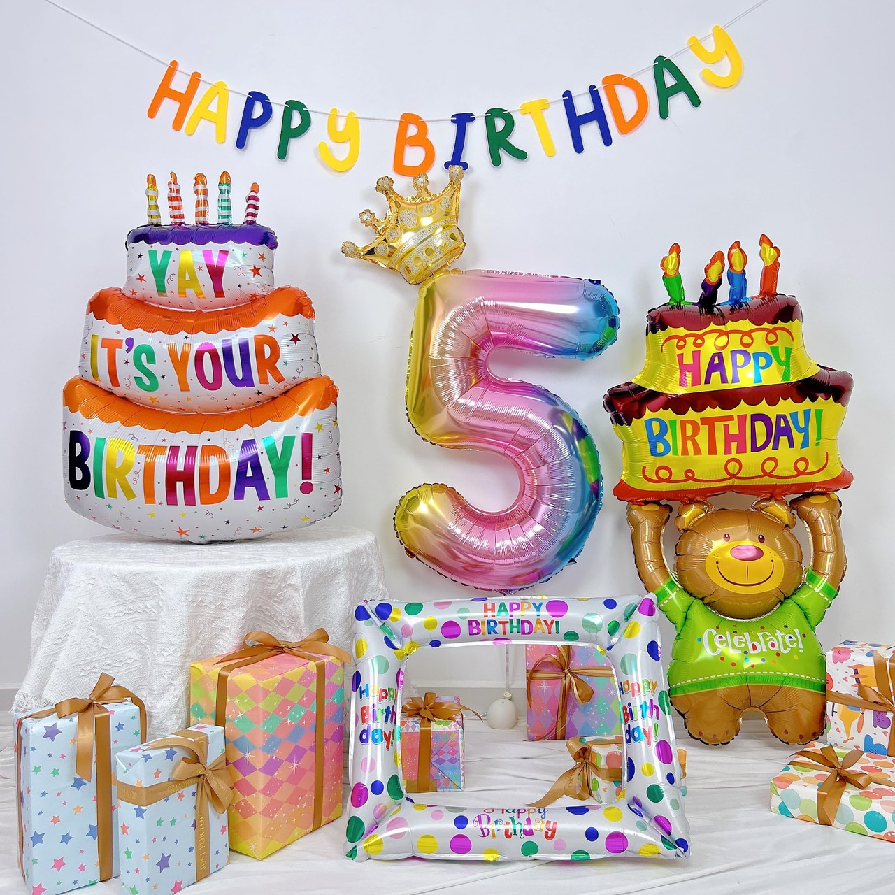 5歳 誕生日 飾り付け 男の子 女の子 大人 誕生日バルーン バースデー 飾り ケーキバルーン フォトフレーム バルーン クマバルーン おしゃれ 写真撮影