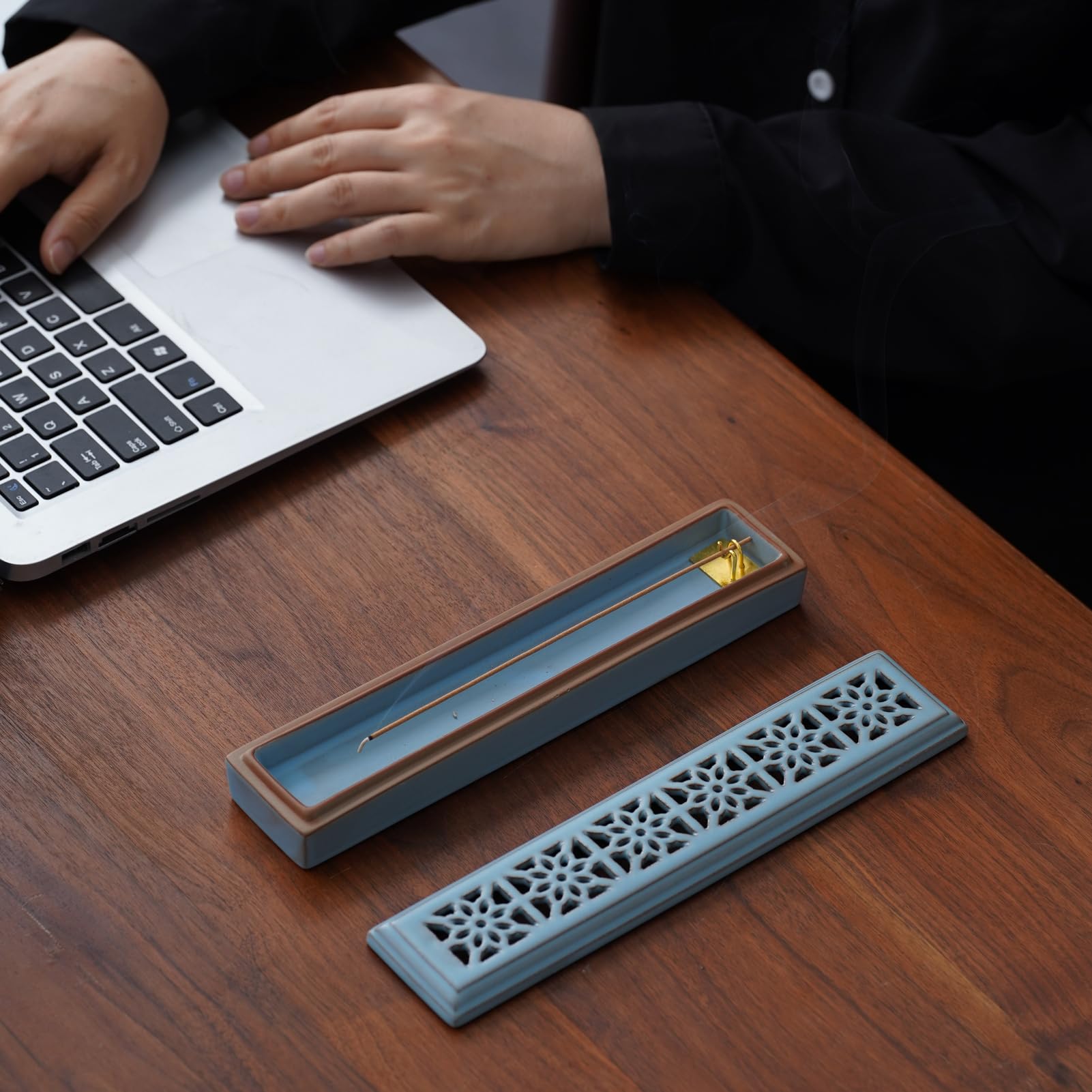 【絶妙な構造】日本のシンプルさ、柔らかい色、ユニークな透かし彫りのデザインにより、香炉はどんなタイプの家具にも完璧にマッチします。 日本のお線香に適しており、棒に火をつけると香箱から香りと煙がゆっくりと上がります。