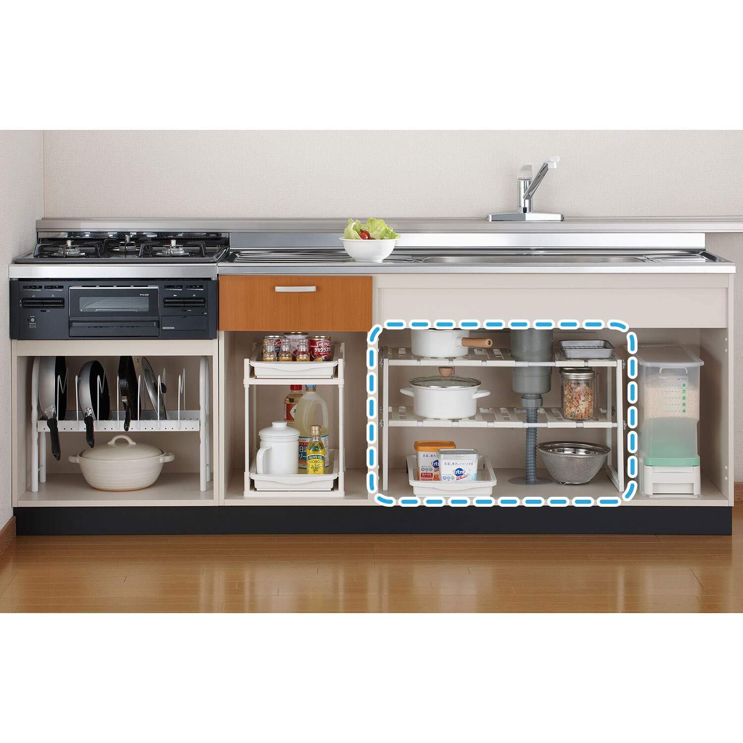 Belca(ベルカ) 日本製 キッチン収納 シンク下フリーラック 伸縮タイプ 幅50~75×奥行30.3×高さ39.8cm ホワイト シンク下収納 2段 棚 VR-EXT