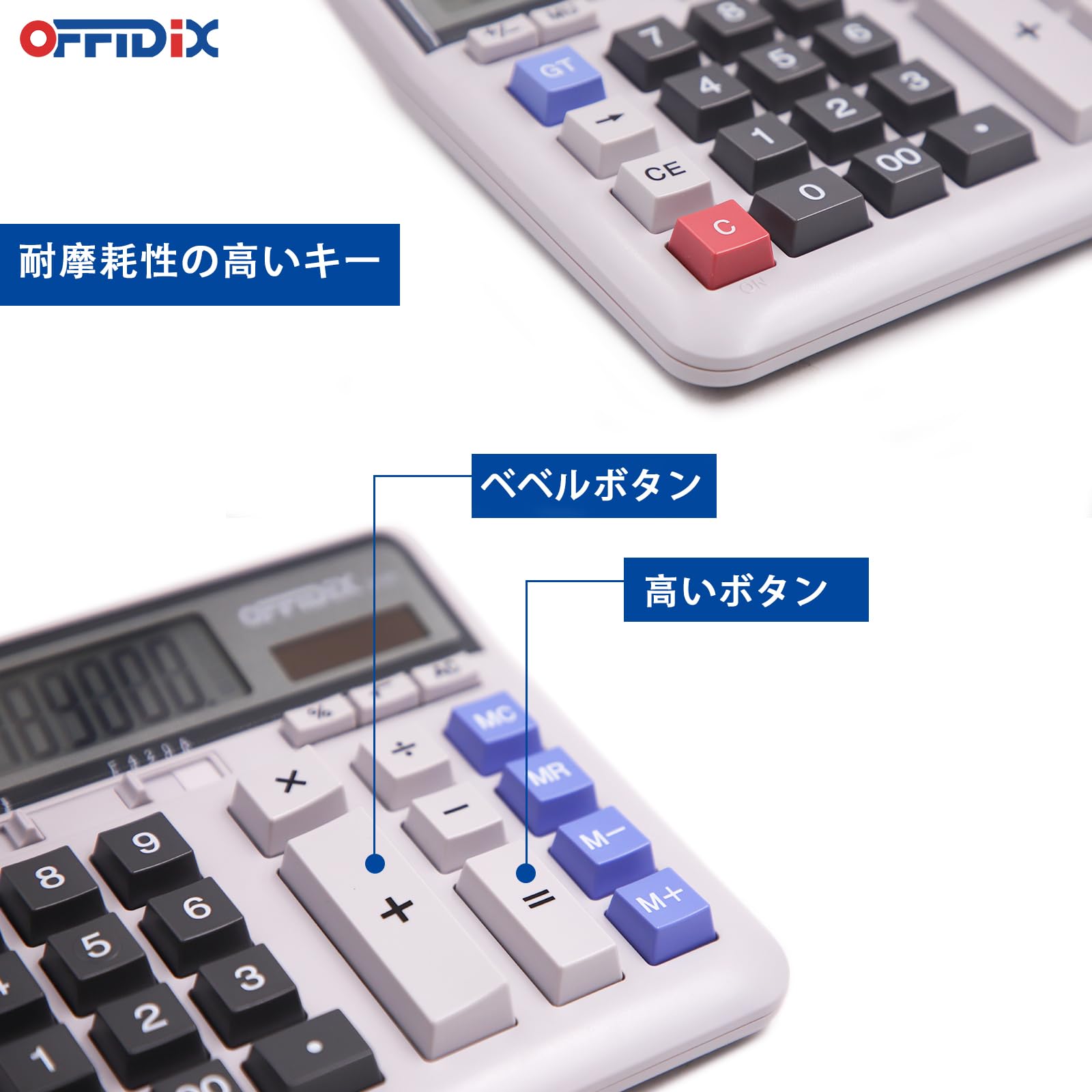 OFFIDIX 電卓 12桁 計算機 大型電卓 実務電卓 卓上計算機 大きい 電卓 おしゃれ 大型液晶 ソーラー