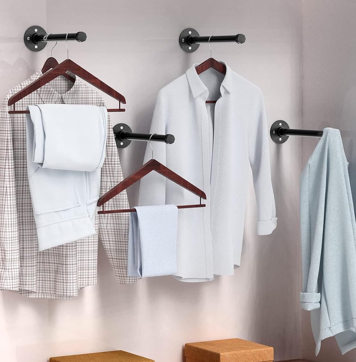 インダストリアルスタイルの衣類ラックはレトロな雰囲気と高級感があり、絶妙なパイプハンガーのデザインがユニークな印象を与えます。