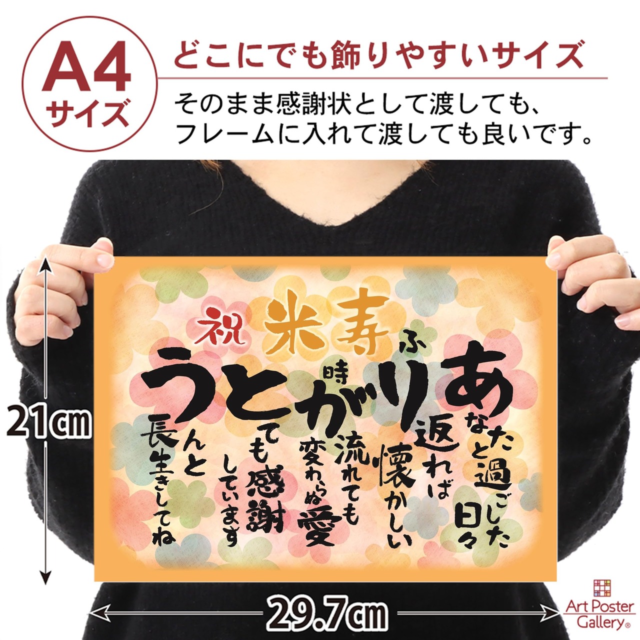 お祝い 誕生日 米寿 ありがとう A4サイズ (お父さん お母さん おじいちゃん おばあちゃん 親) メッセージカード ポエム ギフト 感謝状 表彰状 プレゼント 記念日 パーティー 88歳 (変わらぬ愛)