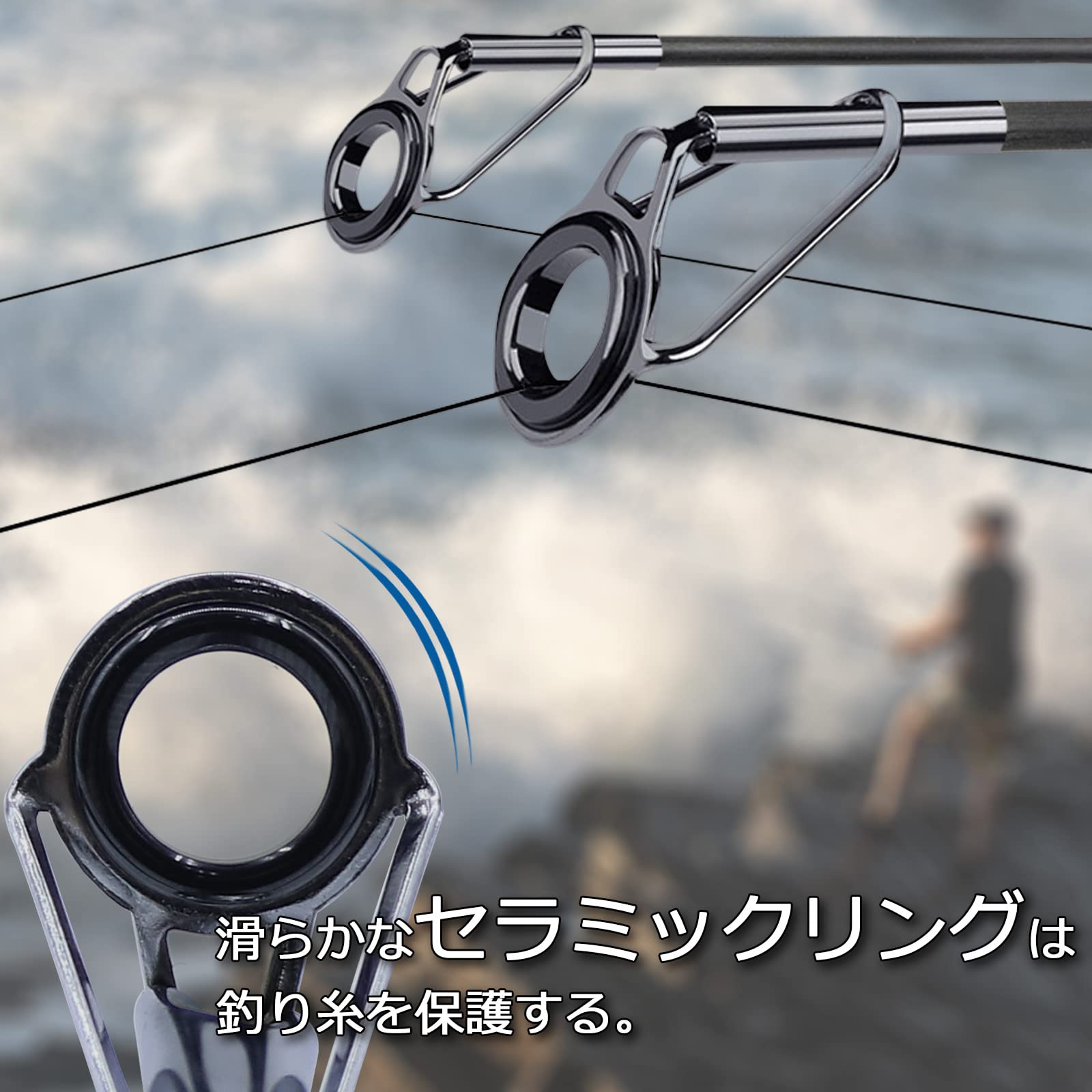 【釣りライン保護用セラミックリング】 ロッドガイドに埋め込まれた滑らかなセラミックリングは、摩擦による釣りライン切れのリスクを大幅に軽減します。 また、ラインがより自由に動くようになります。